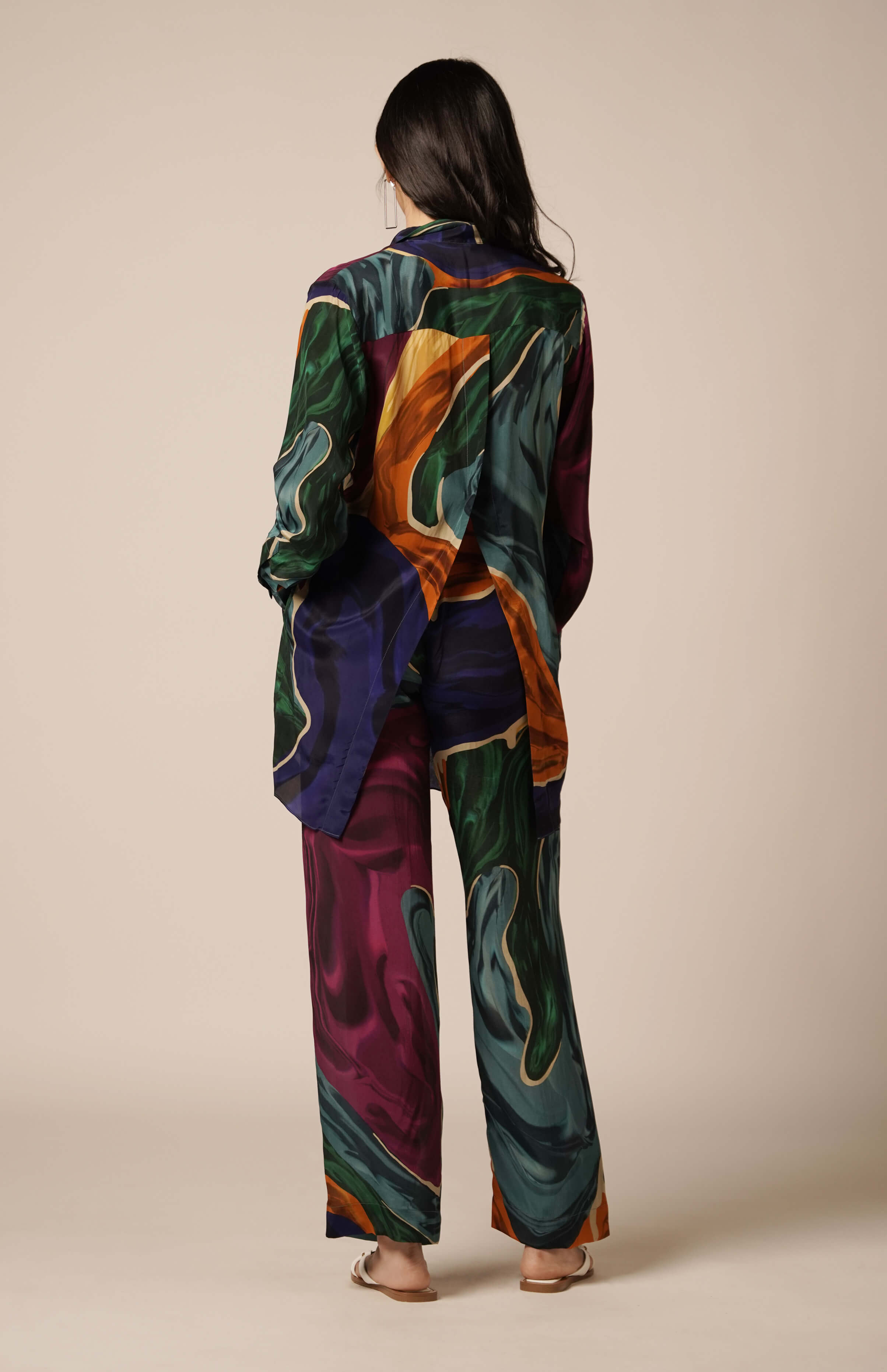 Embrace effortless sophistication with our classic co-ord set, crafted from lightweight crepe for a breezy, comfortable fit. The shirt features a chic slit at the center back, adding a refined touch to its relaxed silhouette. Ideal for both casual outings and more polished events, this versatile ensemble combines timeless style with modern elegance.