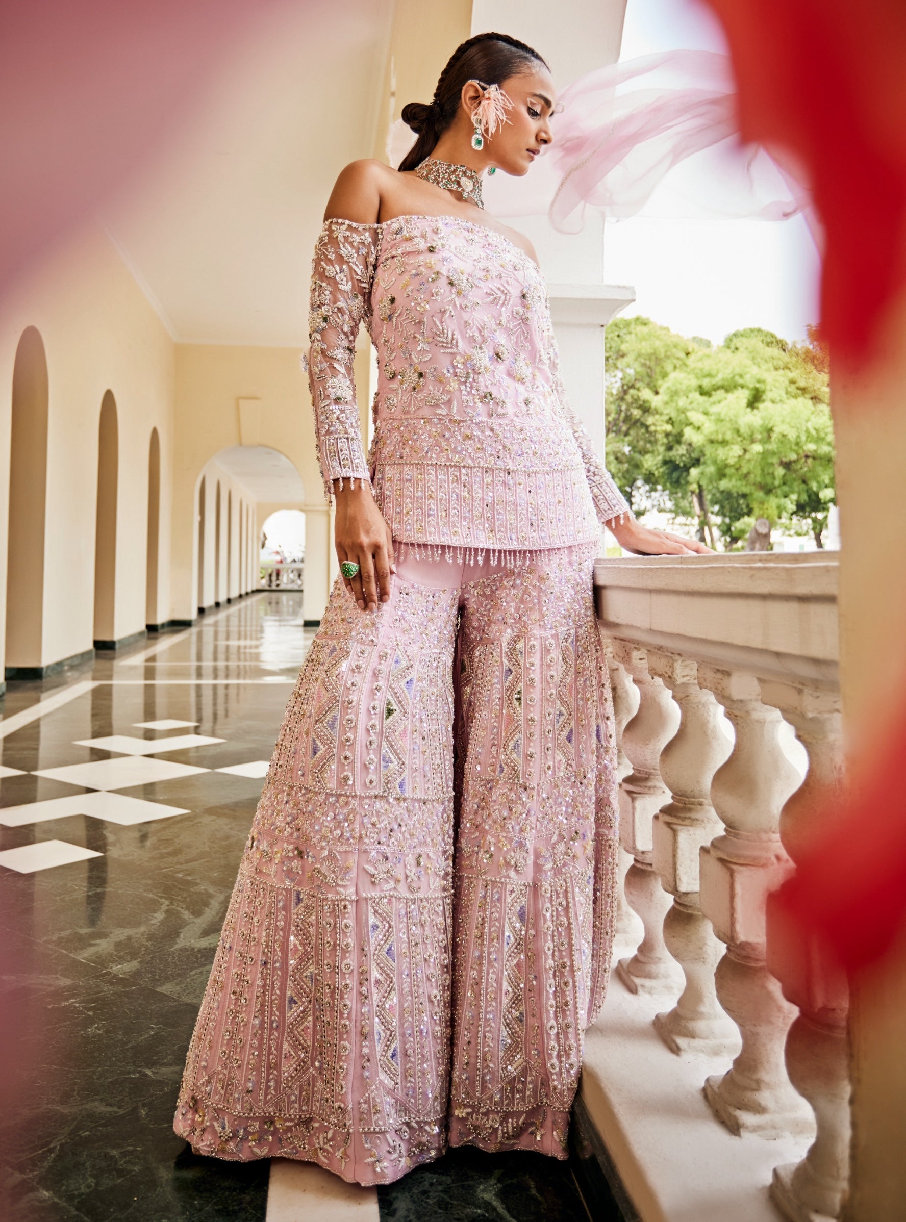 Valentine coral blush kurti & sharara set