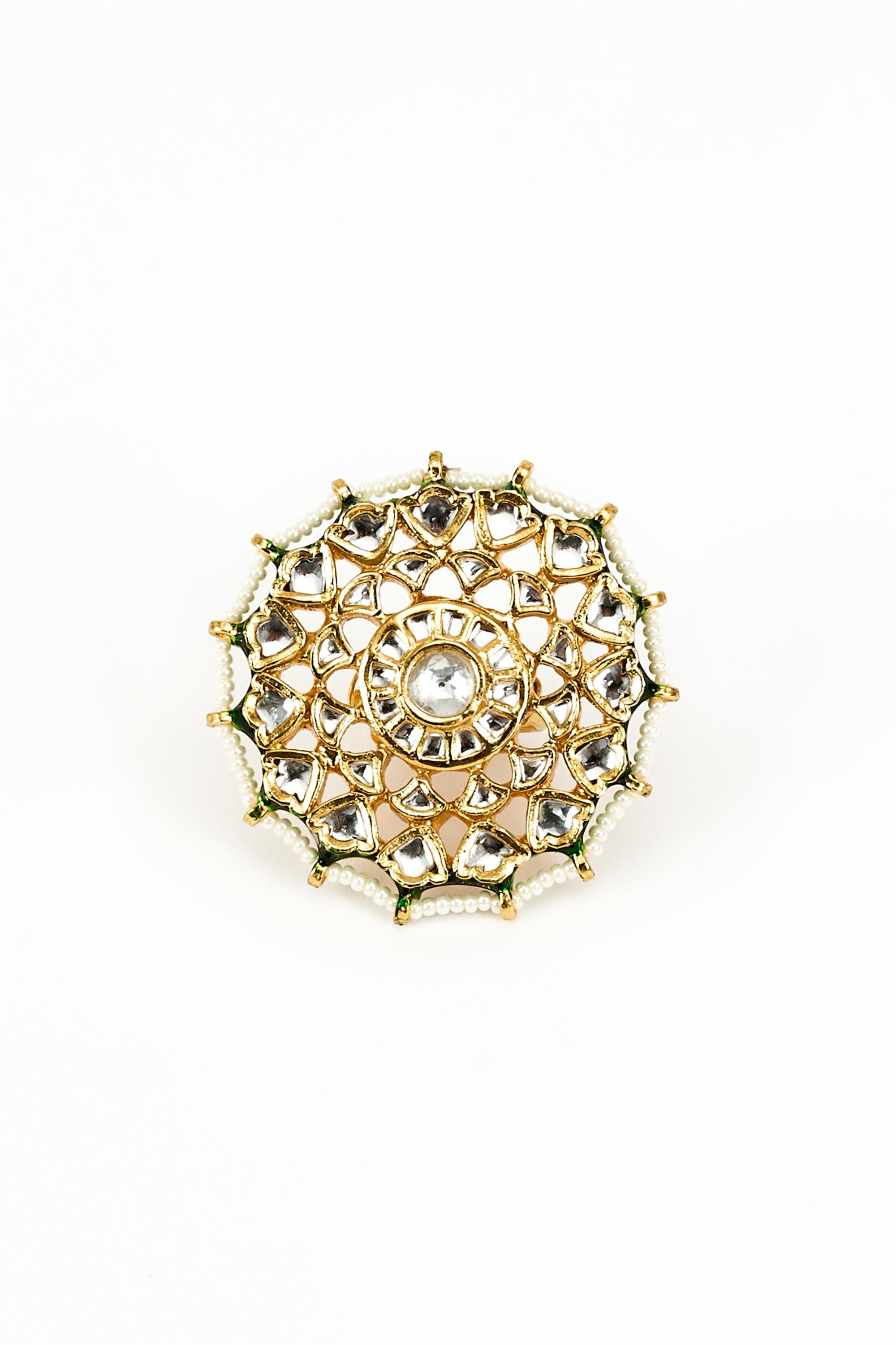 Elevate your festive jewelry collection with the Gold Saadgi Ring from Vivinia by Vidhi Mehra, an exquisite accessory that combines traditional charm with contemporary sophistication. This ring features a polished gold finish with intricate detailing, making it perfect for weddings, festivals, and special celebrations. The ring complements lehengas, sarees, and designer gowns, adding elegance, luxury, and refinement to any outfit. Crafted with precision, the Gold Saadgi Ring ensures both comfort and glamour. Each ring reflects Vivinia by Vidhi Mehra’s dedication to meticulous craftsmanship, making every piece unique and extraordinary. The polished gold finish and intricate design make this ring a statement accessory that draws attention and enhances your festive appearance. Pair the ring with coordinating jewelry such as bangles, maathapattis, or necklaces to create a cohesive and elegant look. Beyond its aesthetic appeal, the ring embodies tradition, luxury, and timeless style, making it a cherished addition to your jewelry collection. With intricate detailing, polished gold finish, and sophisticated design, the Gold Saadgi Ring guarantees admiration and elevates your festive ensemble. Vivinia by Vidhi Mehra ensures this ring remains a statement piece, perfect for celebrating special occasions with grace, elegance, and enduring charm.