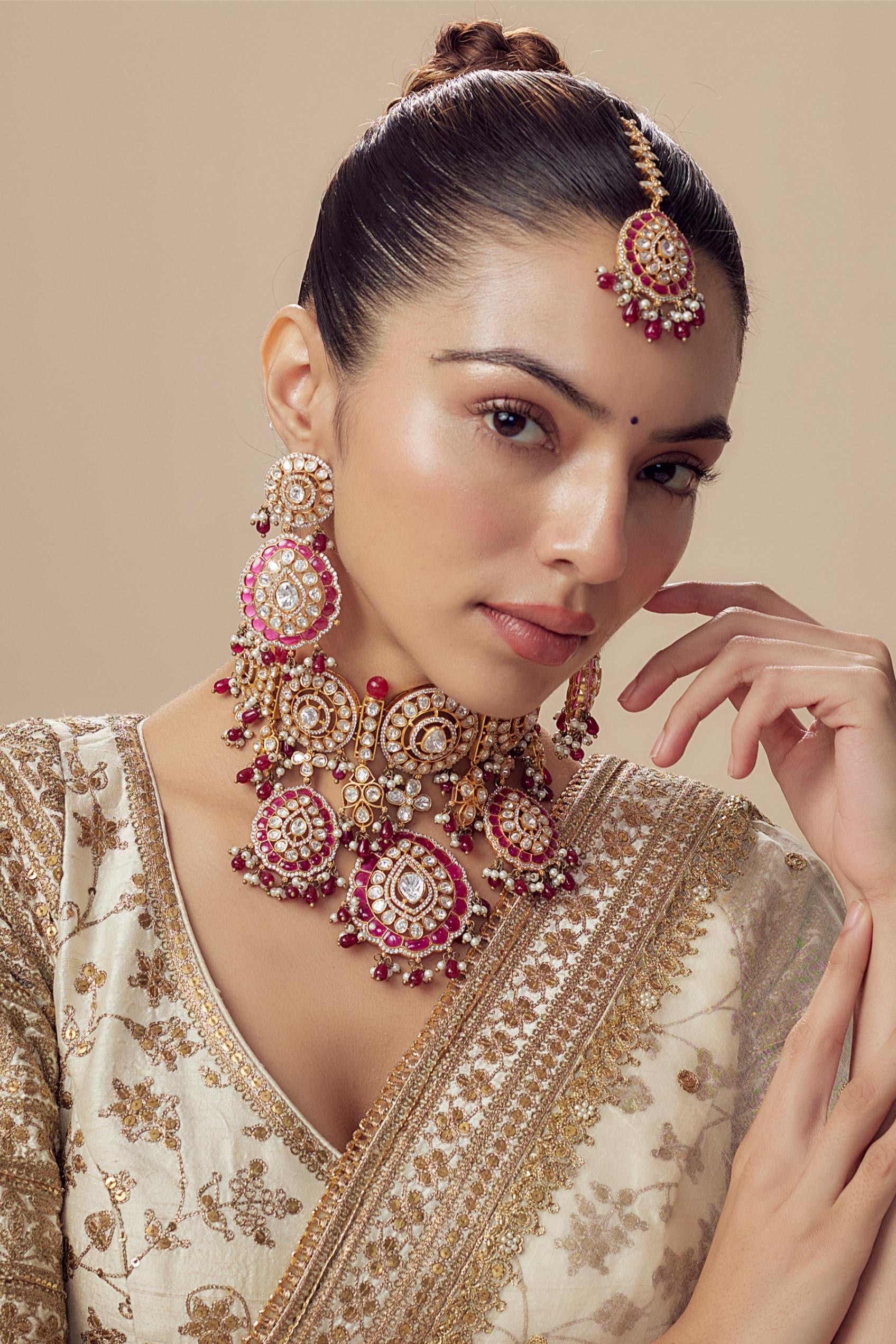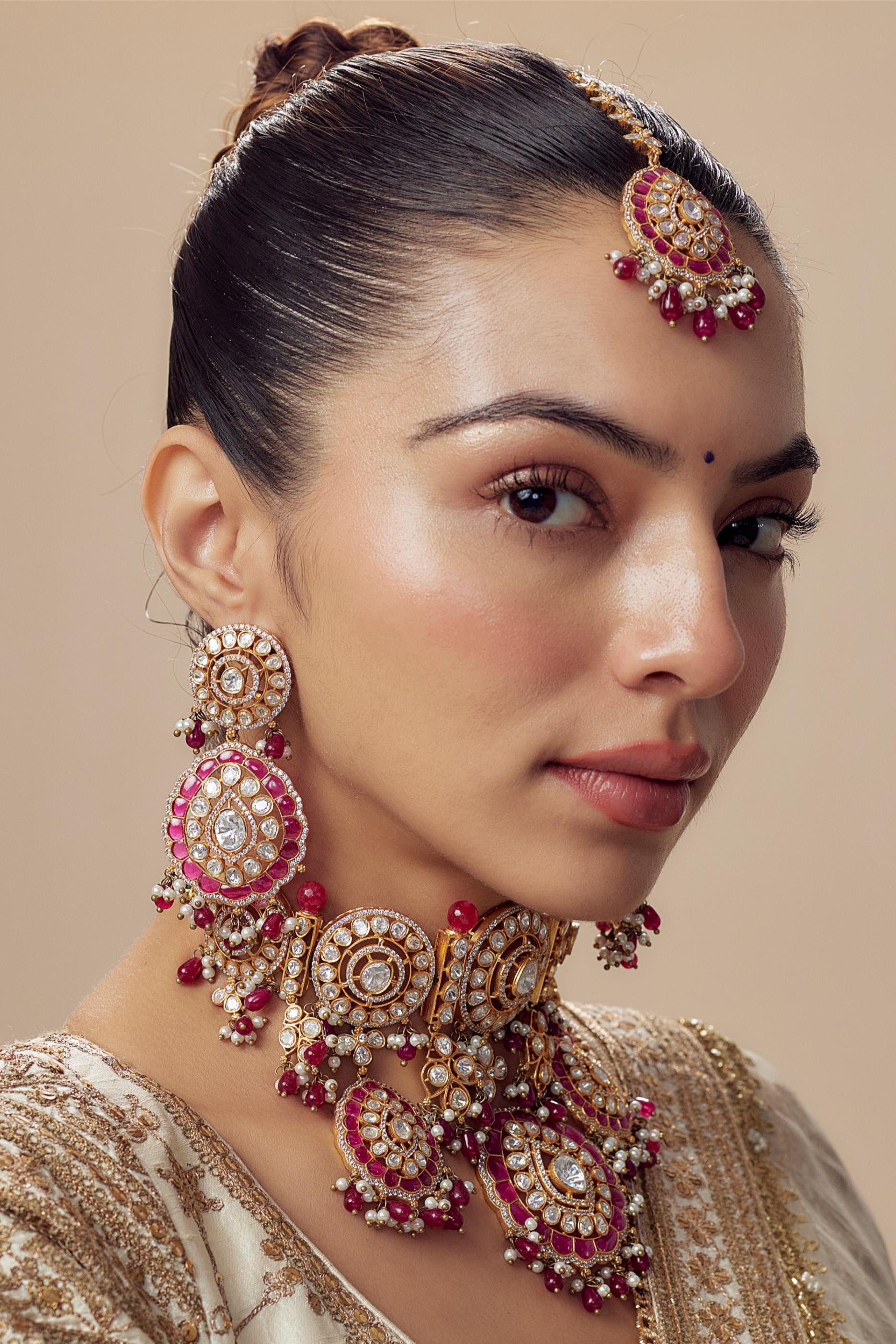 Components: 4 pieces (necklace, pair of earrings maangtikka)