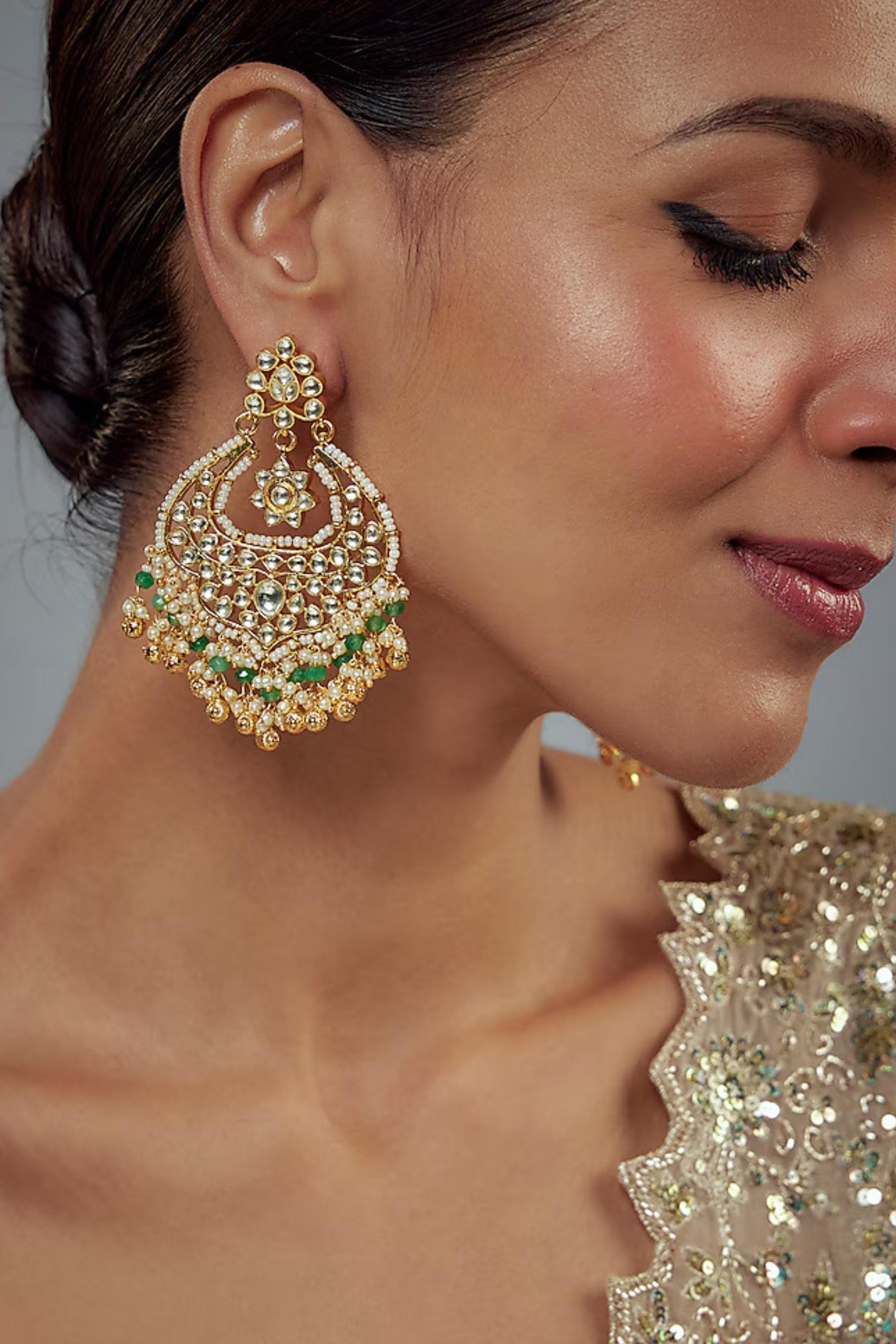 The Green Saadgi Kundan Dangler Earrings offer heritage beauty through their traditional kundan earrings craftsmanship. Perfect for haldi, mehendi, or wedding functions, these kundan earrings add richness and detail. The green accents bring freshness to the kundan earrings, making them visually striking. Lightweight construction keeps the kundan earrings comfortable throughout long events. Styled with lehengas or sarees, these kundan earrings enhance festive charm. A timeless accessory, these kundan earrings elevate any traditional look.