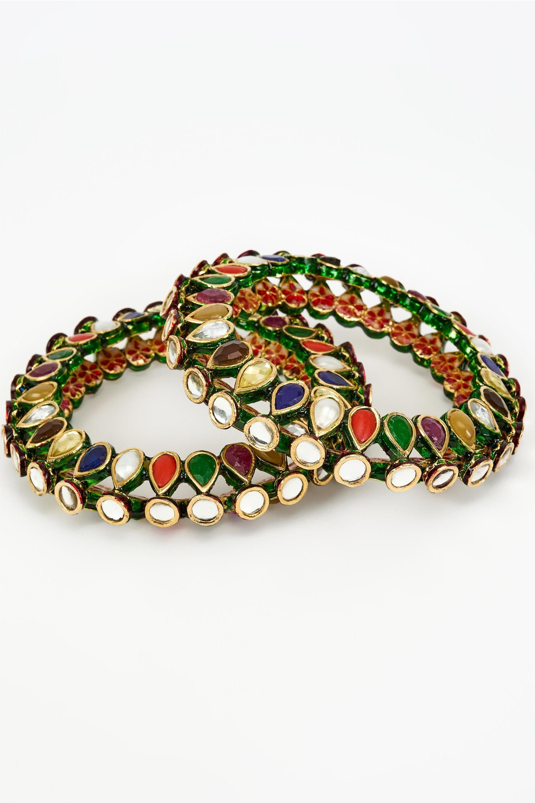 The Multicolor Saadgi Kundan Bangles offer festive brilliance through their stunning kundan bangles craftsmanship. Perfect for weddings and pre-wedding events, these kundan bangles add rich detail and sparkle. The multicolor stones enhance the charm of the kundan bangles, making them versatile to style. Lightweight and comfortable, these kundan bangles are ideal for long celebrations. Whether worn alone or stacked, these kundan bangles elevate any festive look. A joyful accessory, these kundan bangles bring color, shine, and tradition.