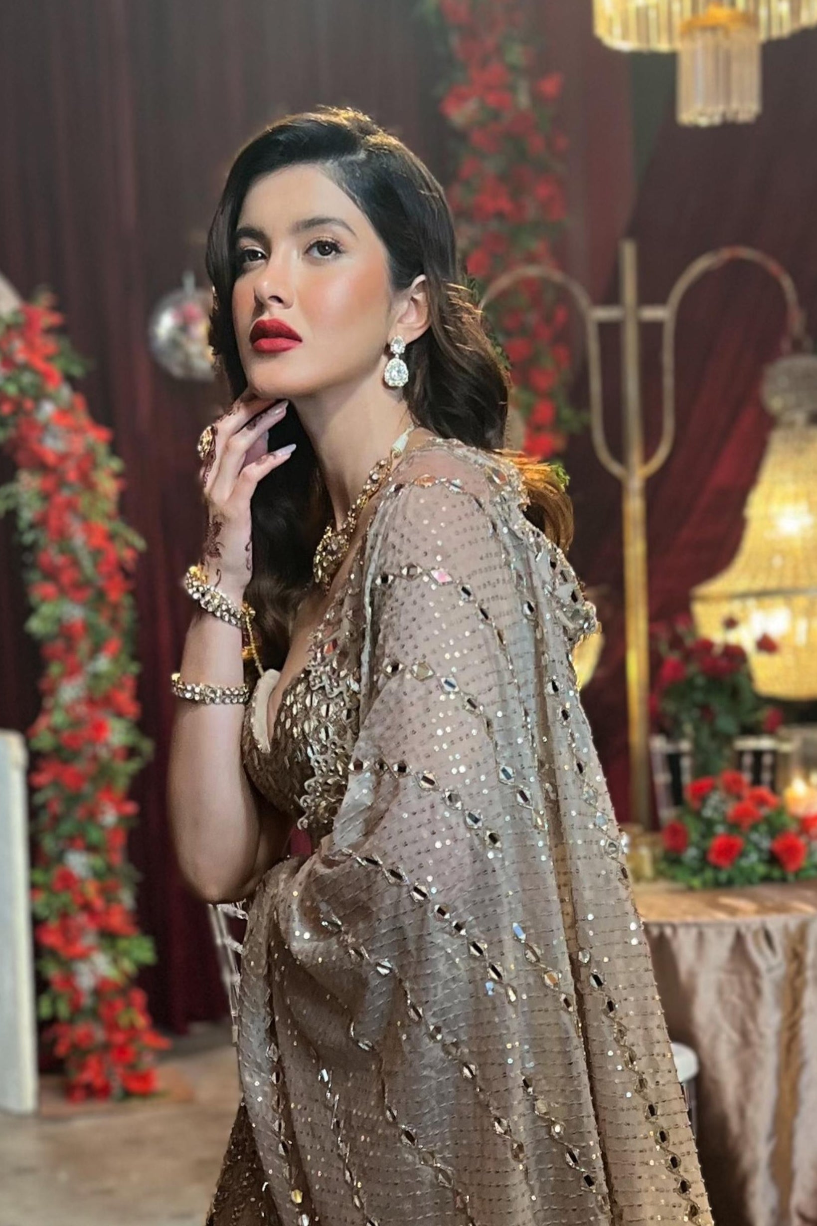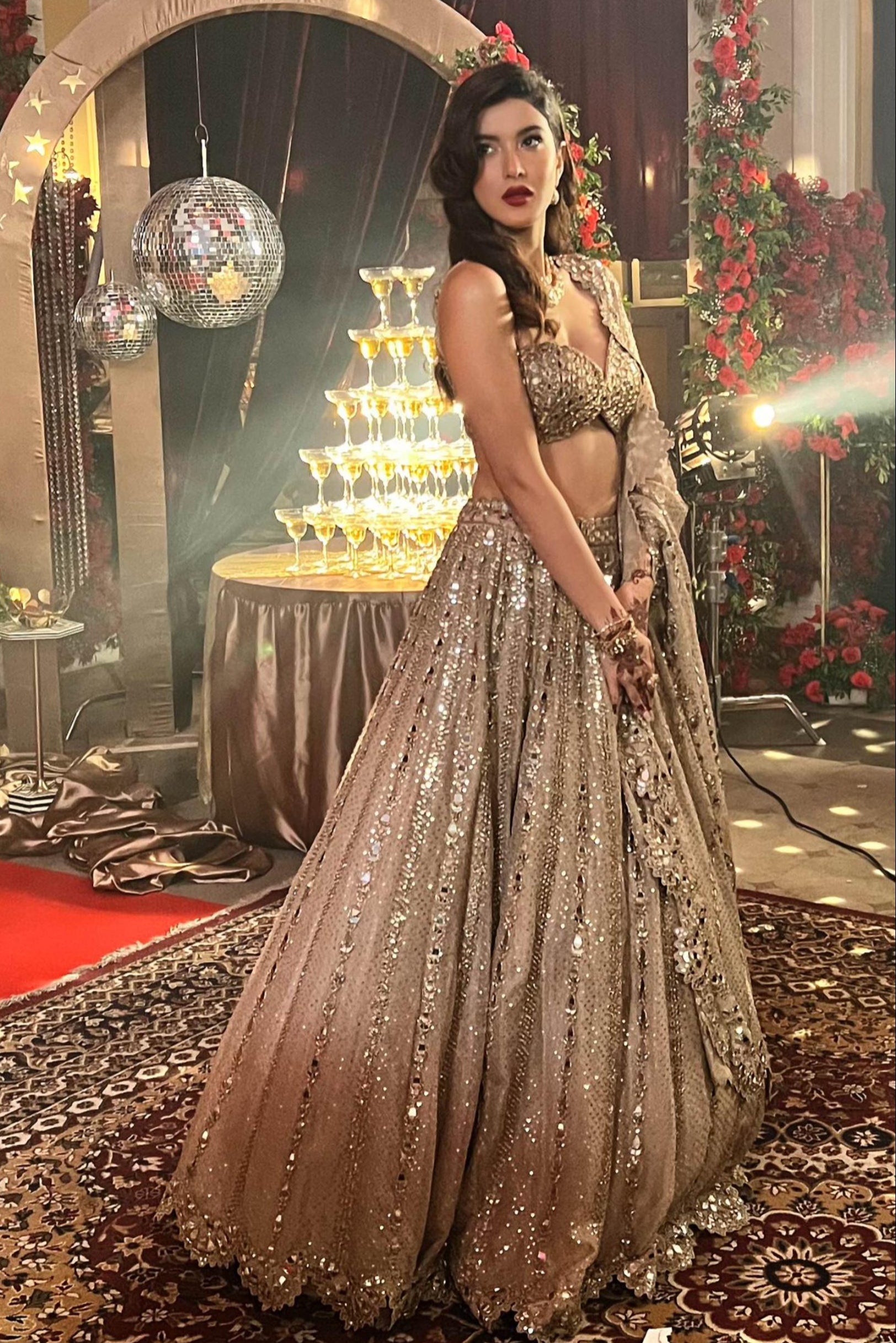 Vvani By Vani Vats’ Beige Jug Mug Sequin Embroidered Lehenga Set is a stunning bridal ensemble that blends tradition with contemporary elegance. The soft beige hue and intricate sequin embroidery create a dreamy aesthetic, perfect for brides who prefer understated glamour. Crafted with luxurious fabrics, the lehenga features a voluminous silhouette paired with a richly embellished blouse and dupatta. Designed for Indian bridal wear, this lehenga offers timeless appeal and a graceful presence. The meticulous craftsmanship and attention to detail highlight Vvani By Vani Vats’ signature design sensibilities. Ideal for wedding ceremonies or grand receptions, this lehenga can be styled with statement jewellery and bridal accessories to complete a look that is both regal and modern.