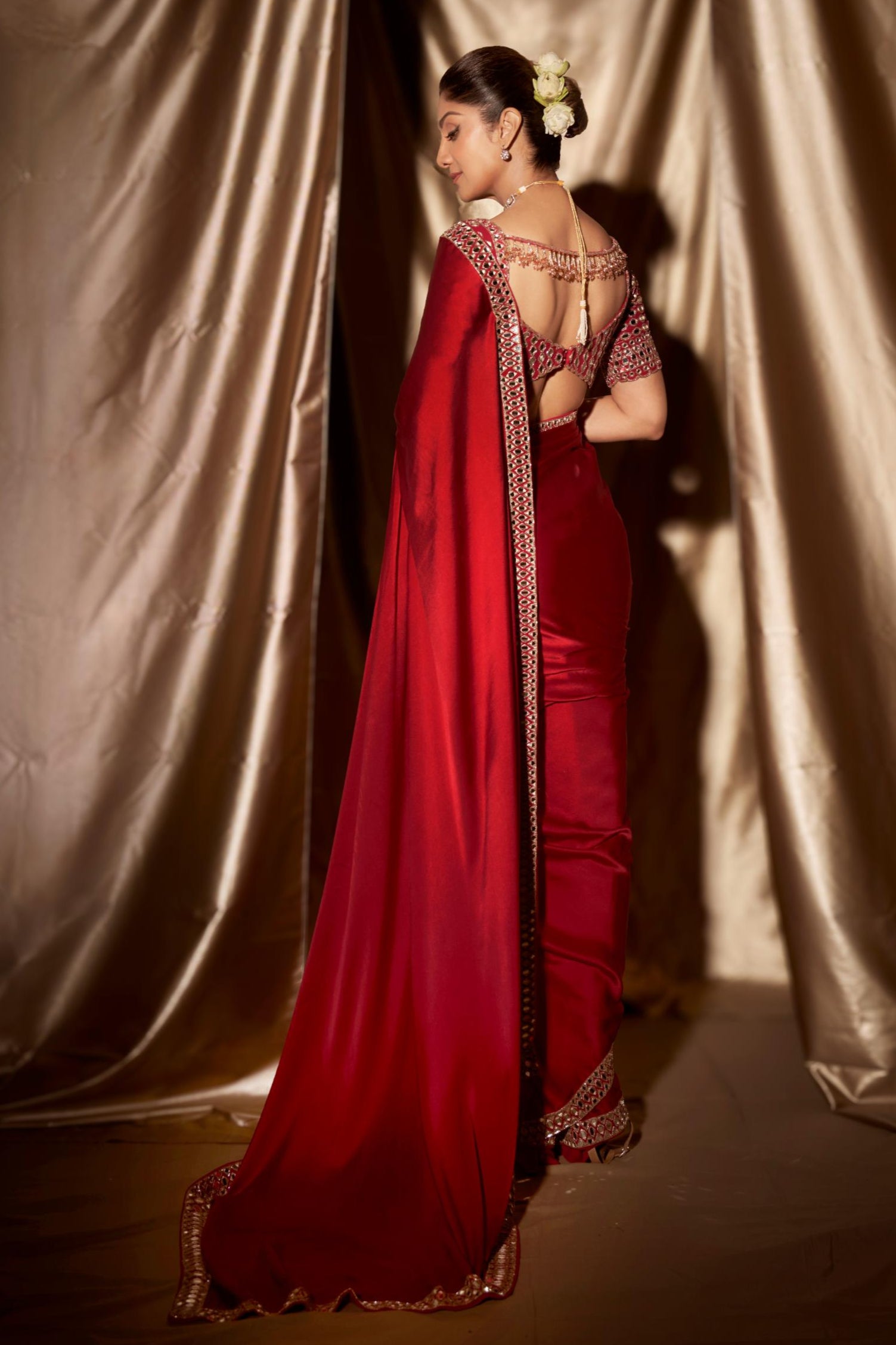 The Red Jug Mug Mirror Embroidered Saree Set by Vvani By Vani Vats is a masterpiece of craftsmanship and modern elegance. Designed for women who appreciate both tradition and contemporary fashion this saree is adorned with intricate mirror embroidery that enhances its festive appeal. The rich red hue makes it an ideal choice for engagement or roka ceremonies ensuring that you stand out beautifully on your special day. This saree is crafted from high-quality fabric that drapes gracefully providing both comfort and sophistication. The saree offe endless styling options – pair it with traditional gold jewellery for a regal appearance or opt for minimal accessories for a modern undetated look. With the Red Jug Mug Mirror Embroidered Saree Set you get a veatile outfit that combines the grace of a traditional saree with contemporary detailing. The saree is perfect for pre-wedding functions cultural celebrations or festive occasions where elegance is key. The saree reflects Vvani By Vani Vats’ commitment to quality and style ensuring you look your best at every event. By choosing this saree you invest in timeless fashion that will remain a favorite in your wardrobe for yea to come.