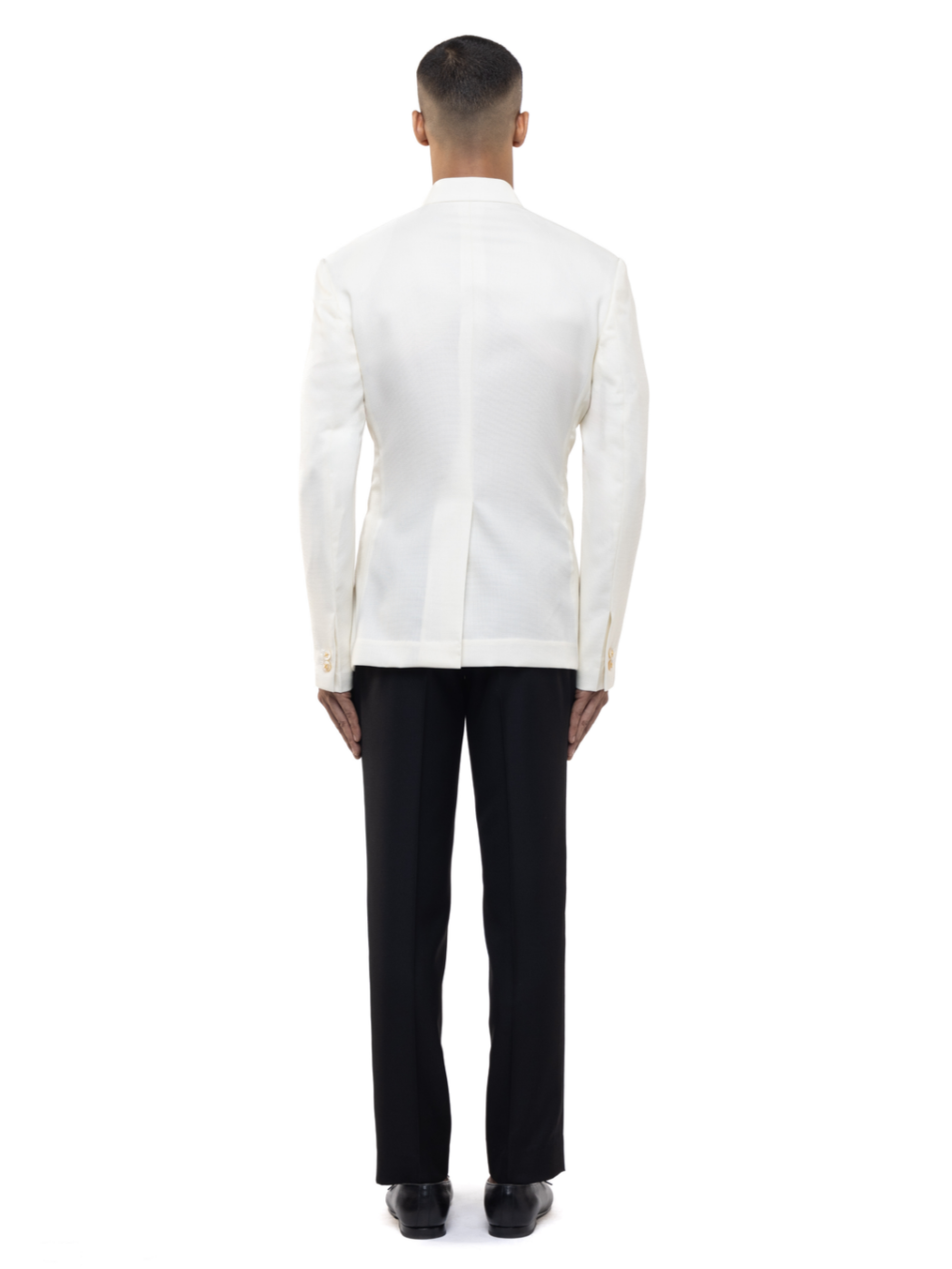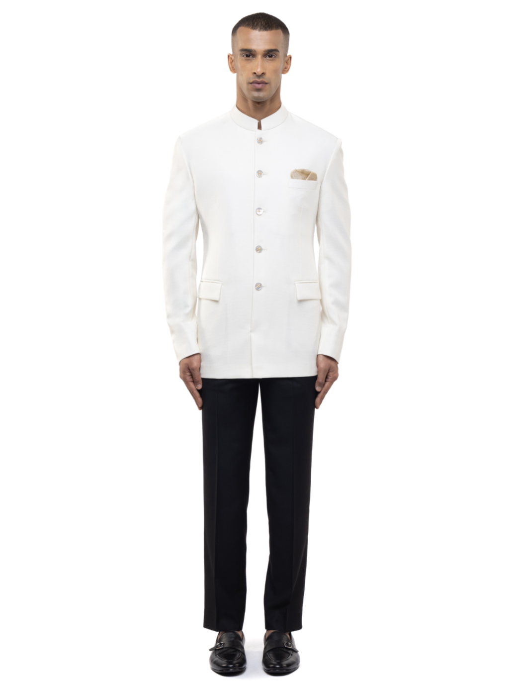 Refined and timeless, the White Classic Bandhgala Set is the epitome of understated elegance. Designed in a crisp white hue, this ensemble features a clean, structured silhouette that exudes sophistication. Ideal for weddings, daytime ceremonies, and festive gatherings, the White Classic Bandhgala Set offers versatile styling for the modern gentleman who appreciates minimalism with a royal touch.