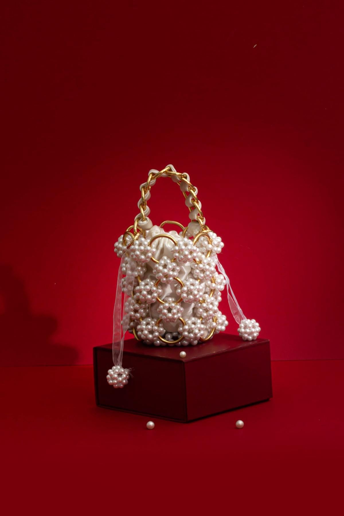 Elevate your style with our Leila Pearl Bucket Bag, a stunning statement piece adorned with hand-selected pearls. Designed for those who love elegance, this exquisite bag adds a touch of sophistication to any ensemble. Whether paired with party wear or evening attire, itÕs more than just an accessoryÑitÕs a conversation starter. Make a lasting impression with this timeless beauty!
