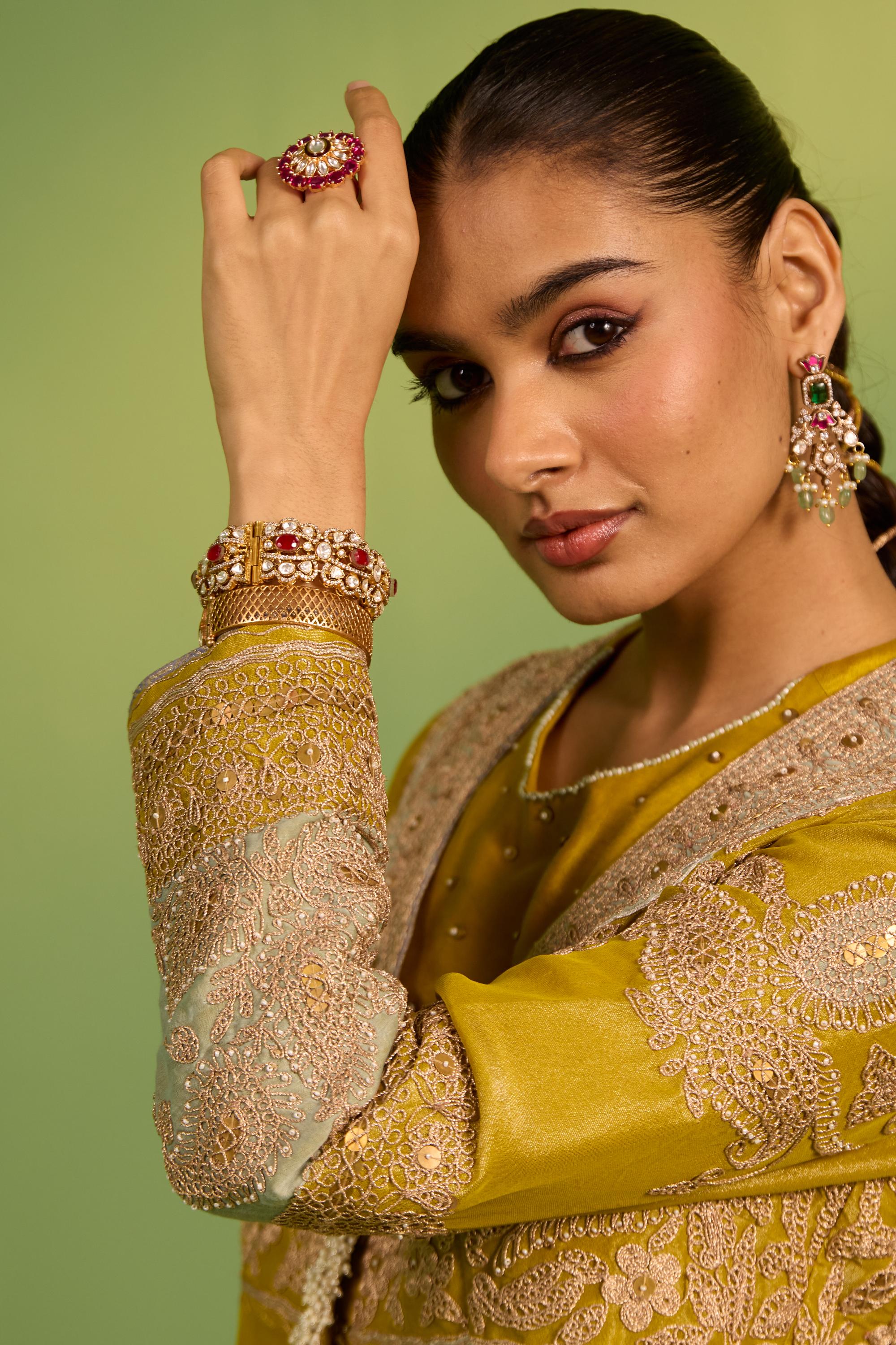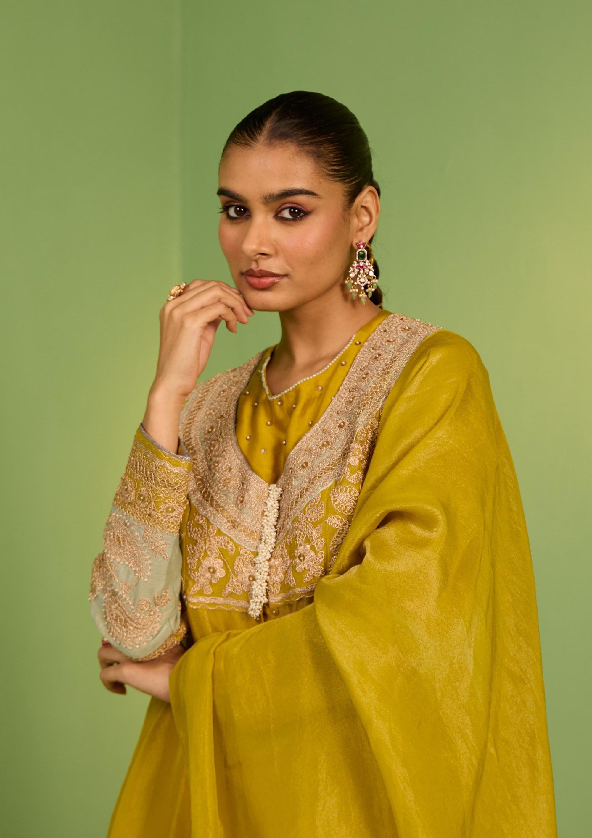 Bright, graceful, and rooted in timeless tradition—the Yellow Bahaar Noor Anarkali Set radiates festive charm with every detail. Designed in a cheerful yellow hue, this full-length Anarkali features delicate embroidery, a flattering flared silhouette, and a soft dupatta that completes the ensemble with elegance. Ideal for haldi functions, mehendi celebrations, or daytime weddings, the Yellow Bahaar Noor Anarkali Set is perfect for the woman who celebrates tradition with vibrant energy and effortless style.
