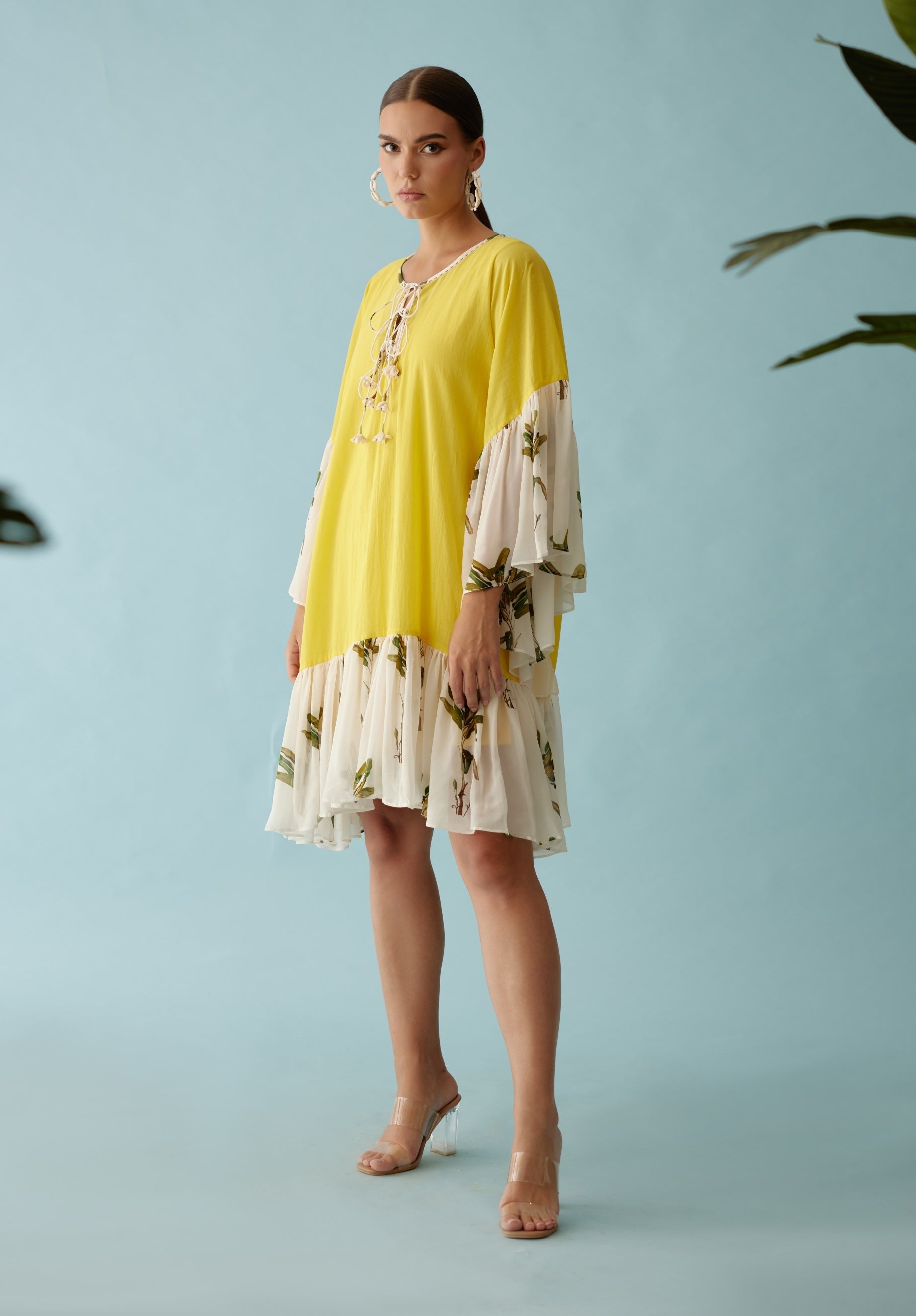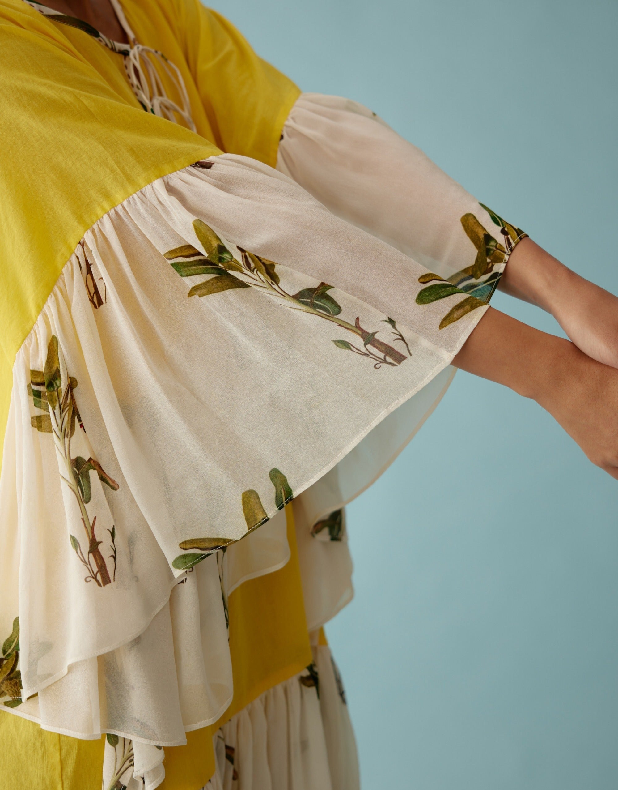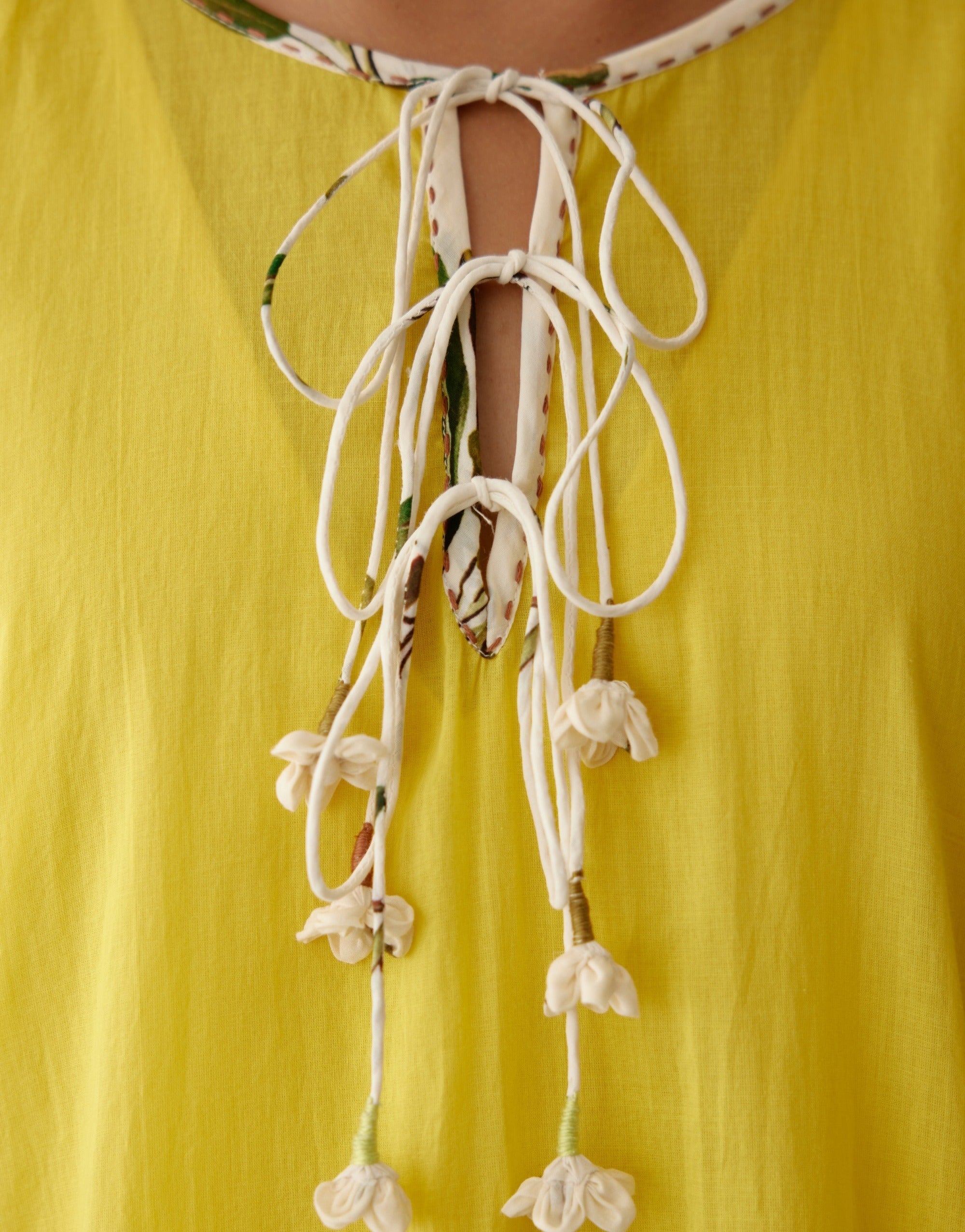 Discover effortless style with our cream hi-low shirt dress, crafted from soft, high-quality cotton for a chic and comfortable fit. This dress features charming banana tree appliqué detailing, adding a playful yet sophisticated touch. The hi-low hemline enhances the modern silhouette, making it perfect for both casual and semi-formal occasions. Embrace a blend of contemporary design and artisanal detail with this versatile and stylish shirt dress, a standout addition to any wardrobe.