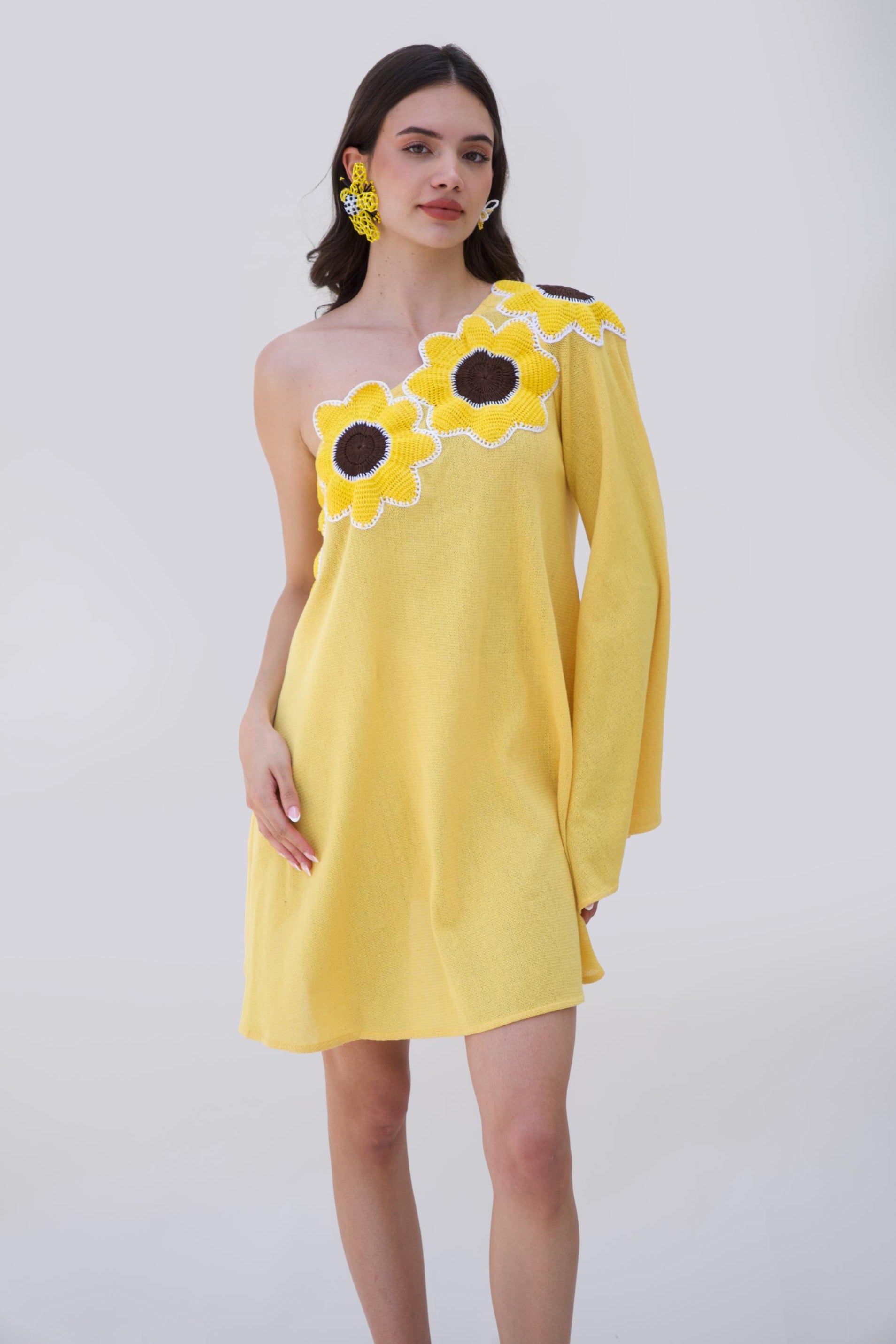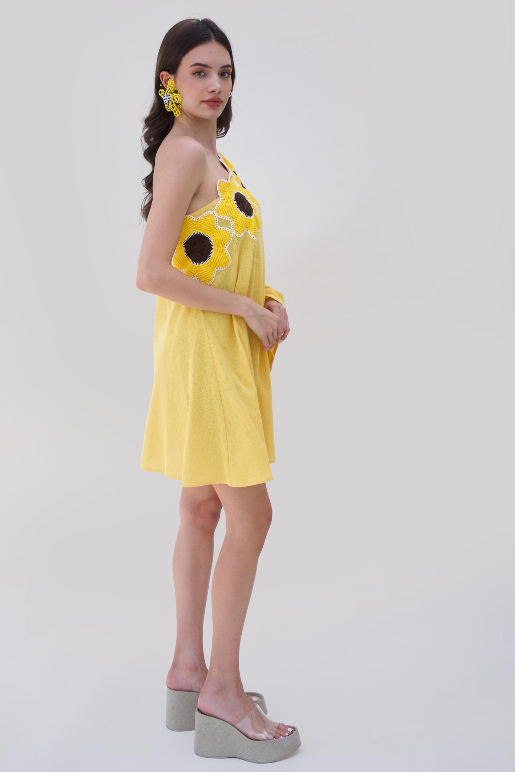 The Yellow Bonnes Vacances Sunflower Mini Dress radiates sunshine and spontaneity—perfect for golden hour getaways and sunlit brunches. Crafted in soft, breathable fabric, its playful mini silhouette is balanced by delicate detailing that adds charm and movement. The vibrant sunflower yellow hue brightens every mood and flatters every skin tone. Whether paired with strappy flats or bold accessories, this dress is made for joyful moments and easy elegance. A cheerful wardrobe essential that captures the carefree essence of summer.