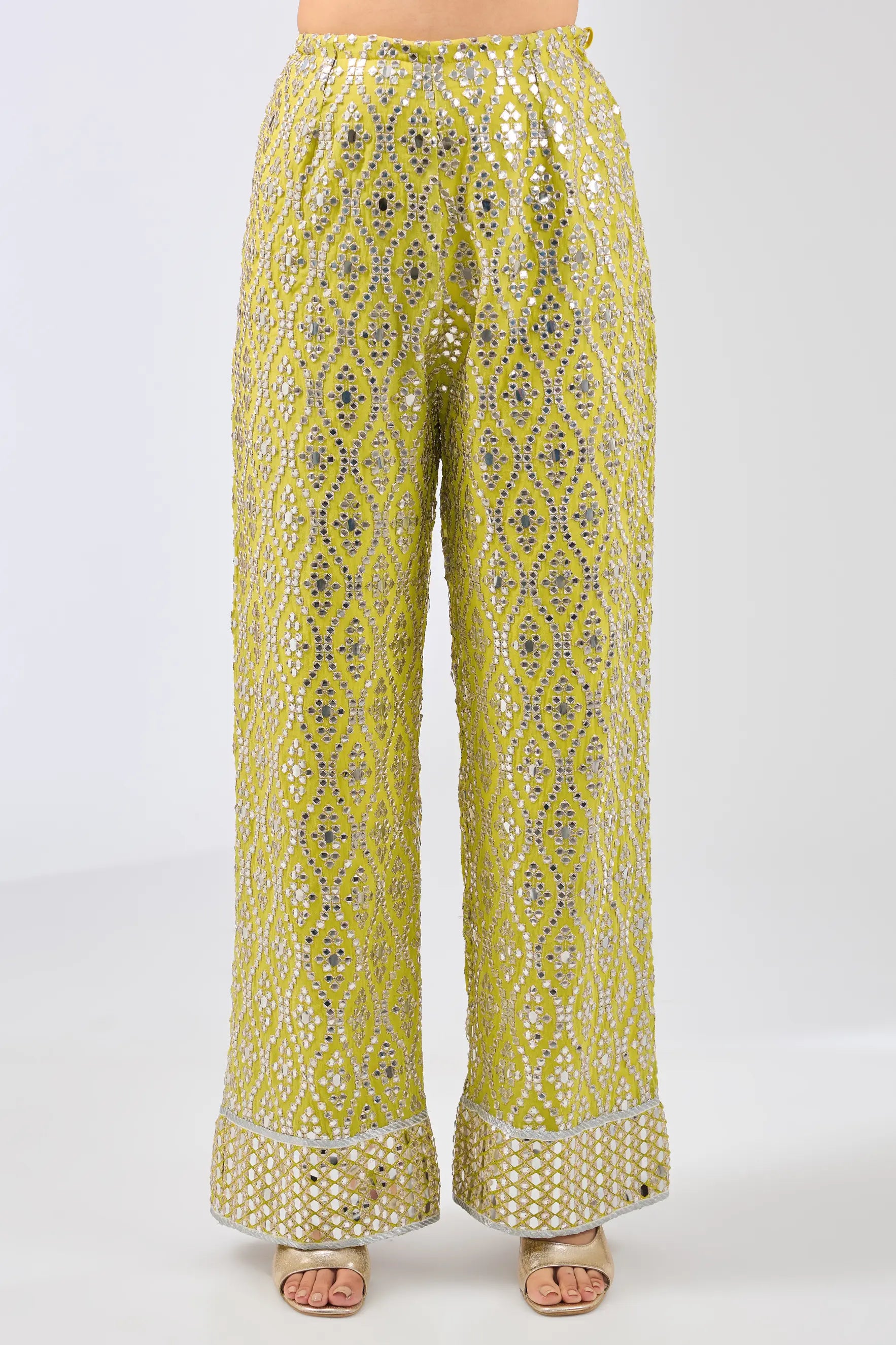 Brighten your wardrobe with our vibrant yellow cape featuring an attached blouse and beautifully crafted mirror work palazzo. This striking ensemble combines modern elegance with traditional charm, making it perfect for festive occasions and celebrations. The flowing cape adds a graceful touch, while the mirror work palazzo enhances the look with its sparkling details. Embrace comfort and style in this chic outfit that is sure to turn heads.