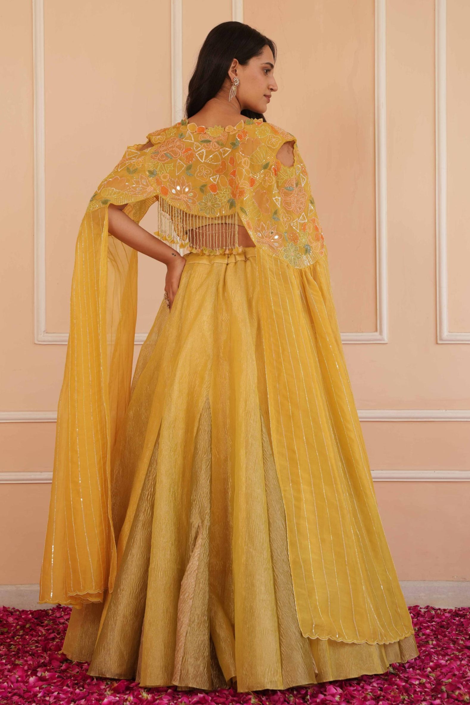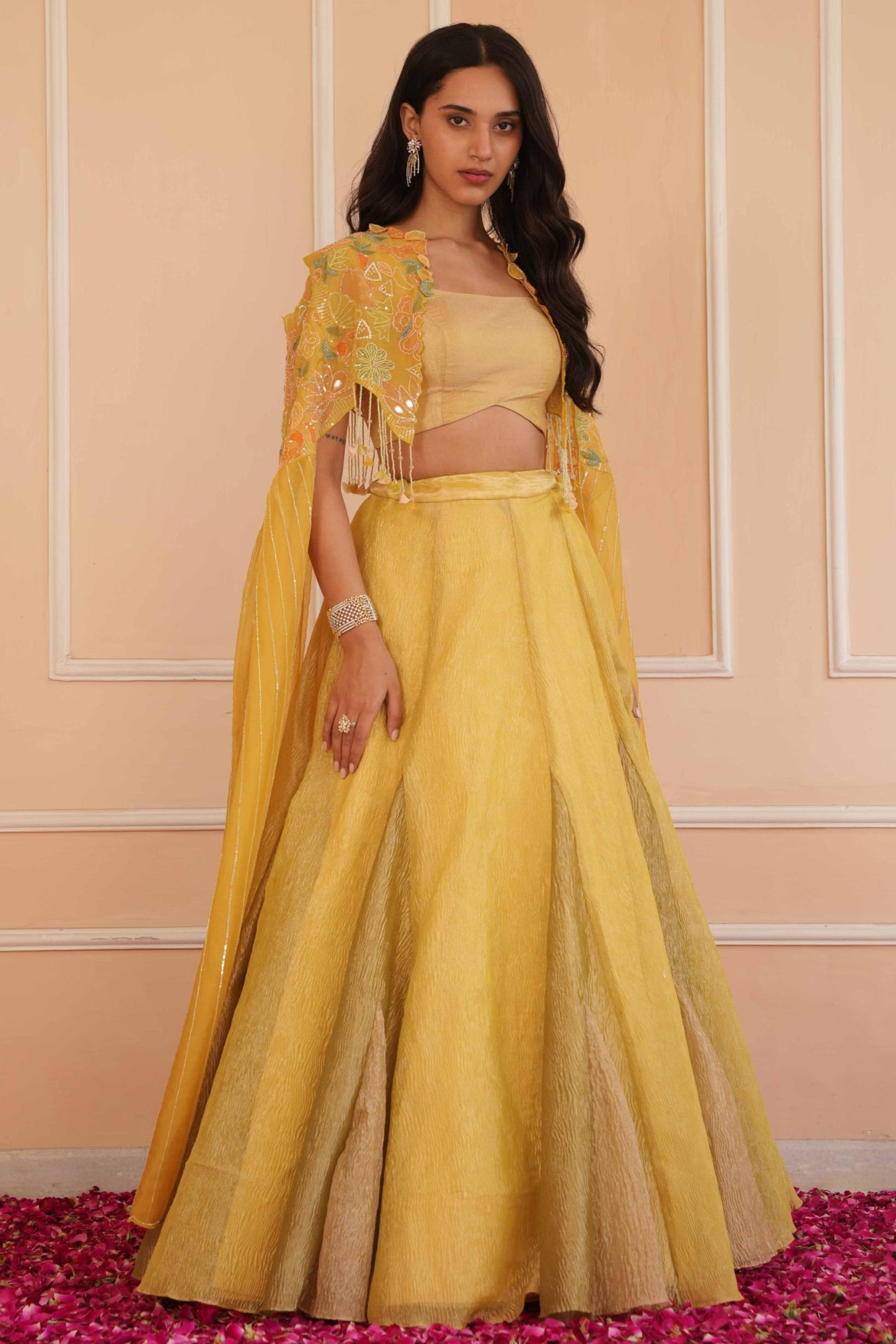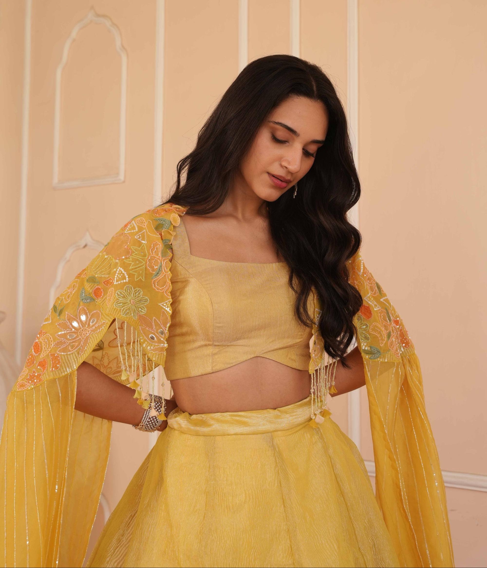 The Yellow Dil Se Ava Tonal Lehenga is a whisper of sunshine captured in couture. Designed in soft tonal shades of yellow, this lehenga brings a layered, textural elegance to festive dressing. The name Ava, meaning "life" or "radiance," perfectly reflects the piece’s graceful energy and its balance of subtlety and spirit. Intricate tonal embroidery adds depth without overwhelming, making it ideal for the woman who shines through simplicity. Perfect for haldi ceremonies, daytime weddings, or soulful celebrations. Pair with minimal jewelry and dewy makeup for a look that’s light, luminous, and deeply dil se.