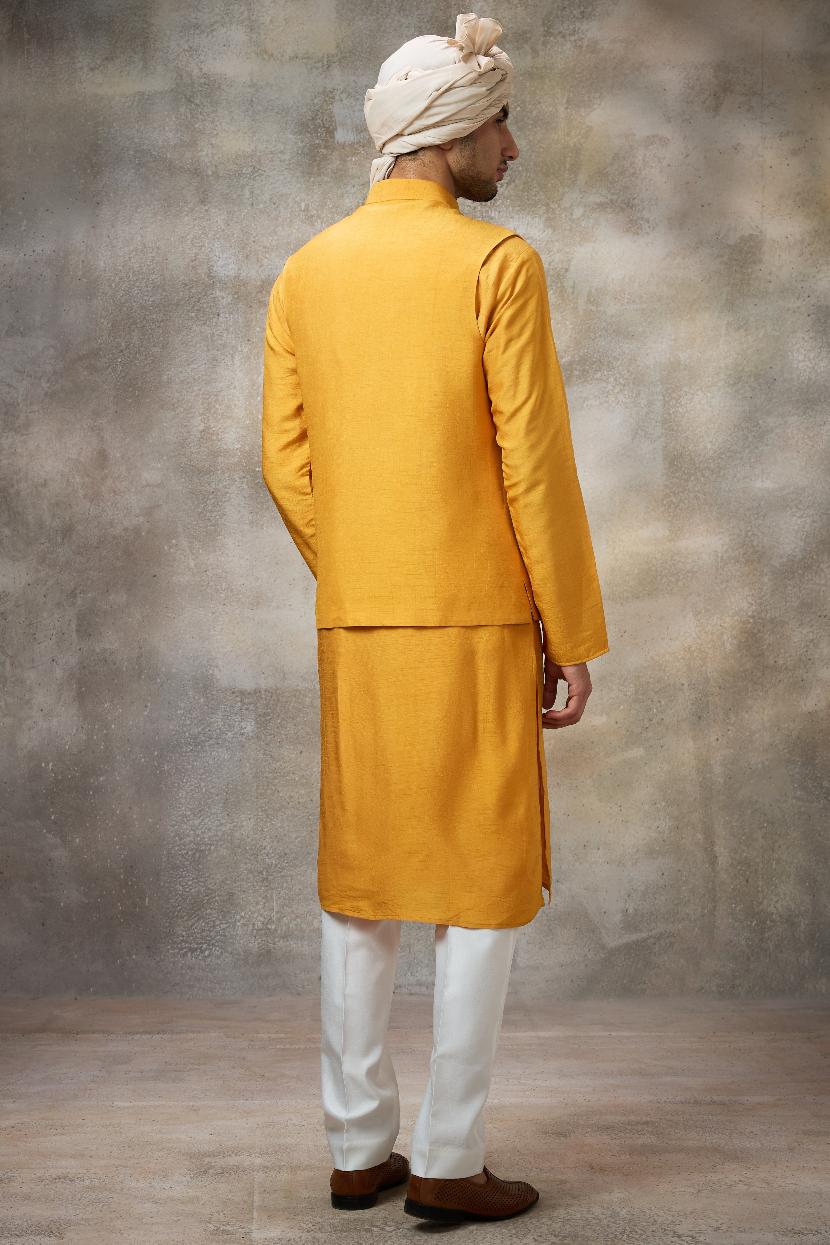 The Yellow Embroidered Koti Set radiates warmth and festive cheer. Intricate embroidery on the koti adds elegance and richness. Paired with a matching kurta, it's perfect for haldi ceremonies or daytime events. Light, bright, and celebratory. A joyful ensemble with artistic flair.