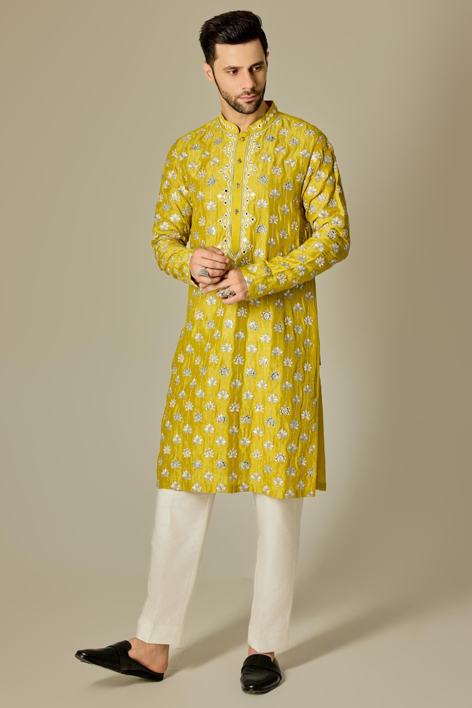 Radiant and celebratory, the Yellow Mirror Kurta Set captures the essence of festive charm with a contemporary twist. Adorned with delicate mirror work that catches the light with every move, this vibrant ensemble is perfect for daytime functions, haldi ceremonies, or summer soirées. Crafted in a breezy silhouette that blends comfort with elegance, it’s designed for the modern woman who embraces tradition with a fresh, luminous glow.
