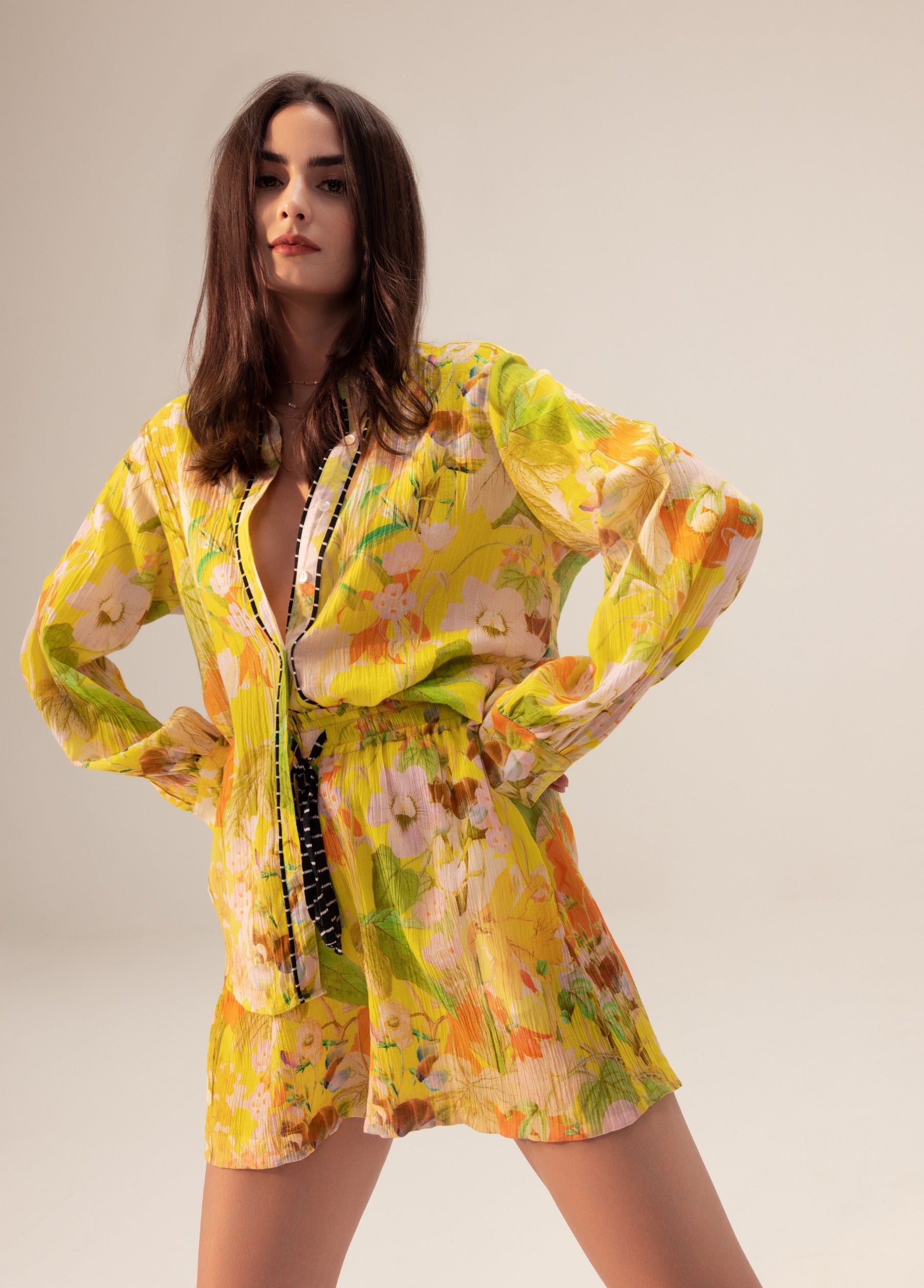 Bright, bold, and full of personality, the Yellow Multicolor Ahana Shirt and Shorts set is a statement in joyful dressing. Featuring a relaxed-fit shirt and easygoing shorts, this co-ord pops with a vibrant yellow base and playful multicolor accents. Perfect for sunny escapes, casual outings, or weekend brunches, it strikes the perfect balance between comfort and standout style. For the woman who celebrates color and effortless fashion, this set is a sunshine-ready essential.