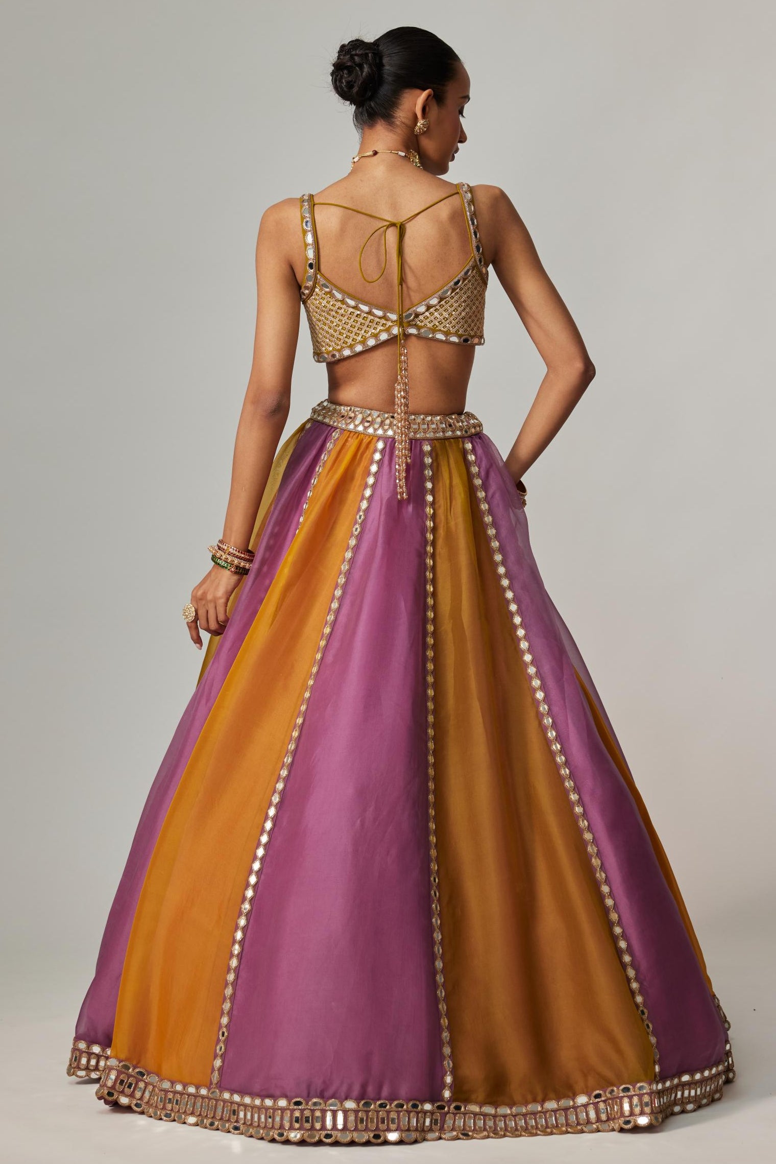 Yellow multicolor noorani linear lehenga set