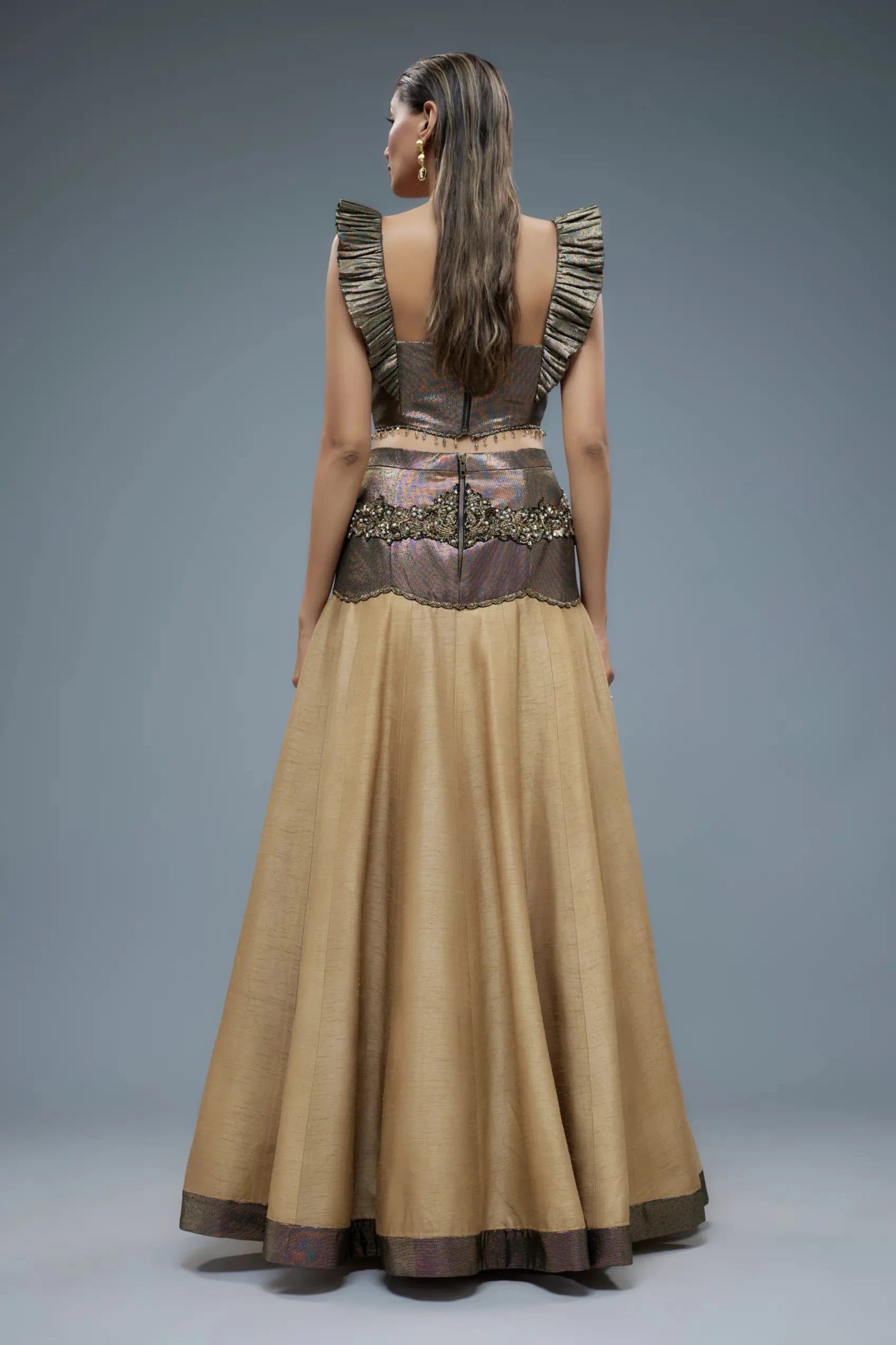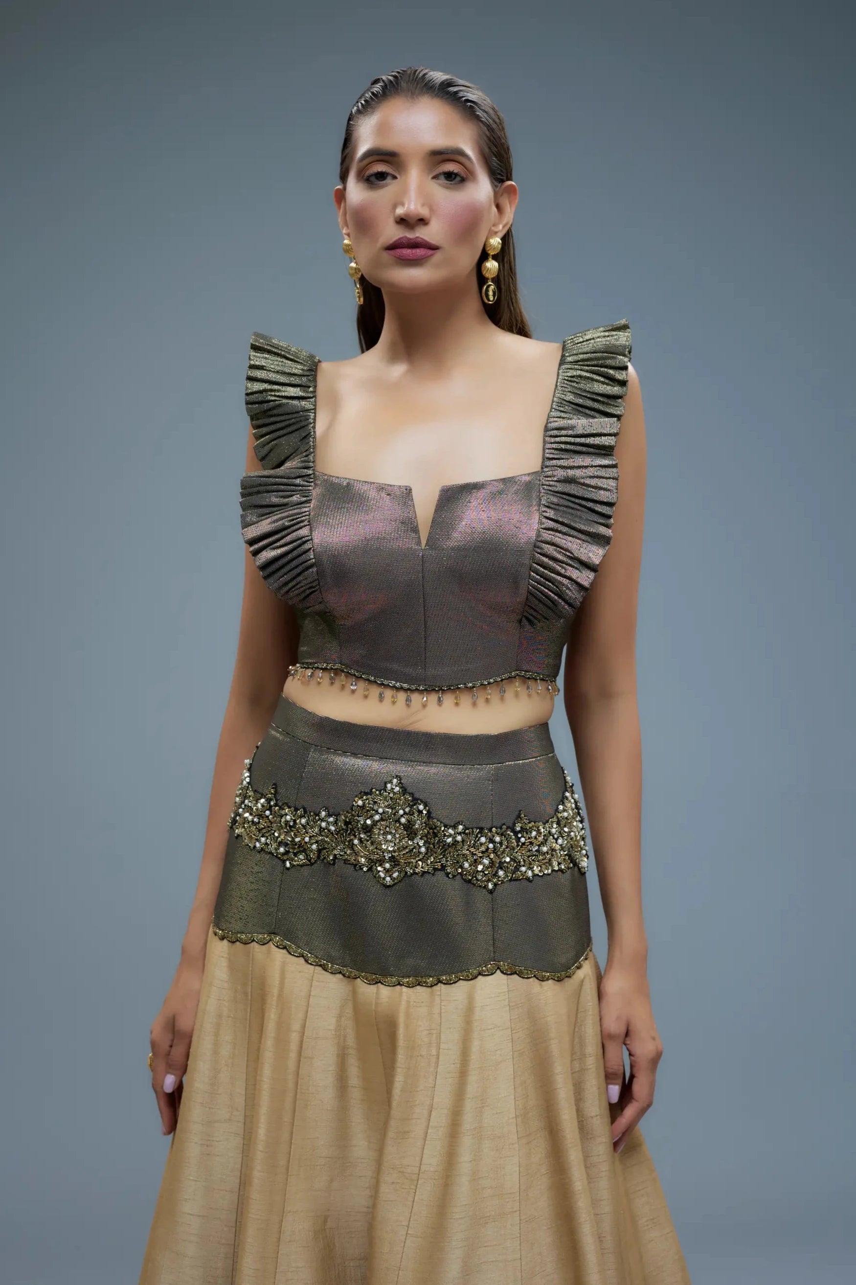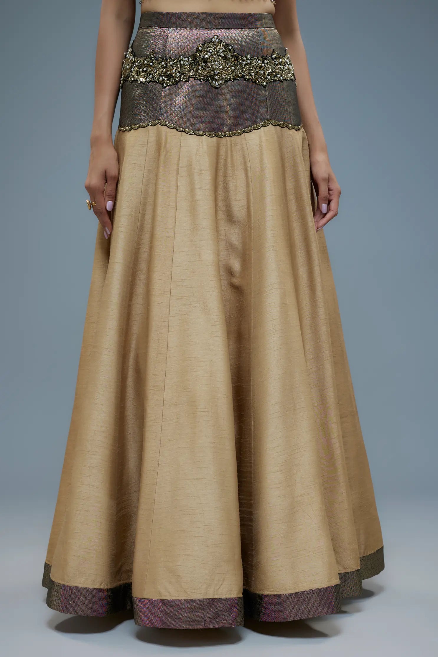 Introducing the Grey Raw Silk Patchwork Lehenga a stunning blend of traditional artistry and contemporary style. This exquisite lehenga is crafted from luxurious raw silk offering a smooth texture and sophisticated sheen while the intricate patchwork detailing elevates the design with a burst of color and pattern. Ideal for weddings receptions and festive occasions this lehenga is perfect for those seeking a timeless yet modern look.