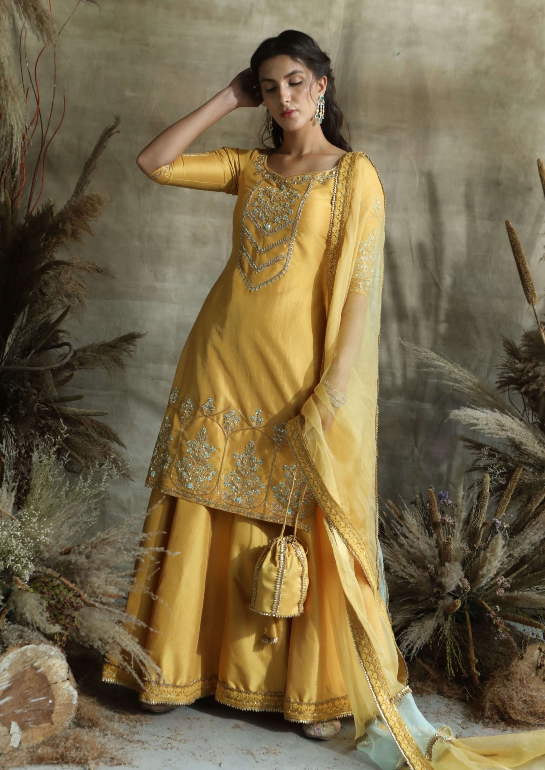 Components: 4 pieces (Kurta, dupatta, garara, potli)