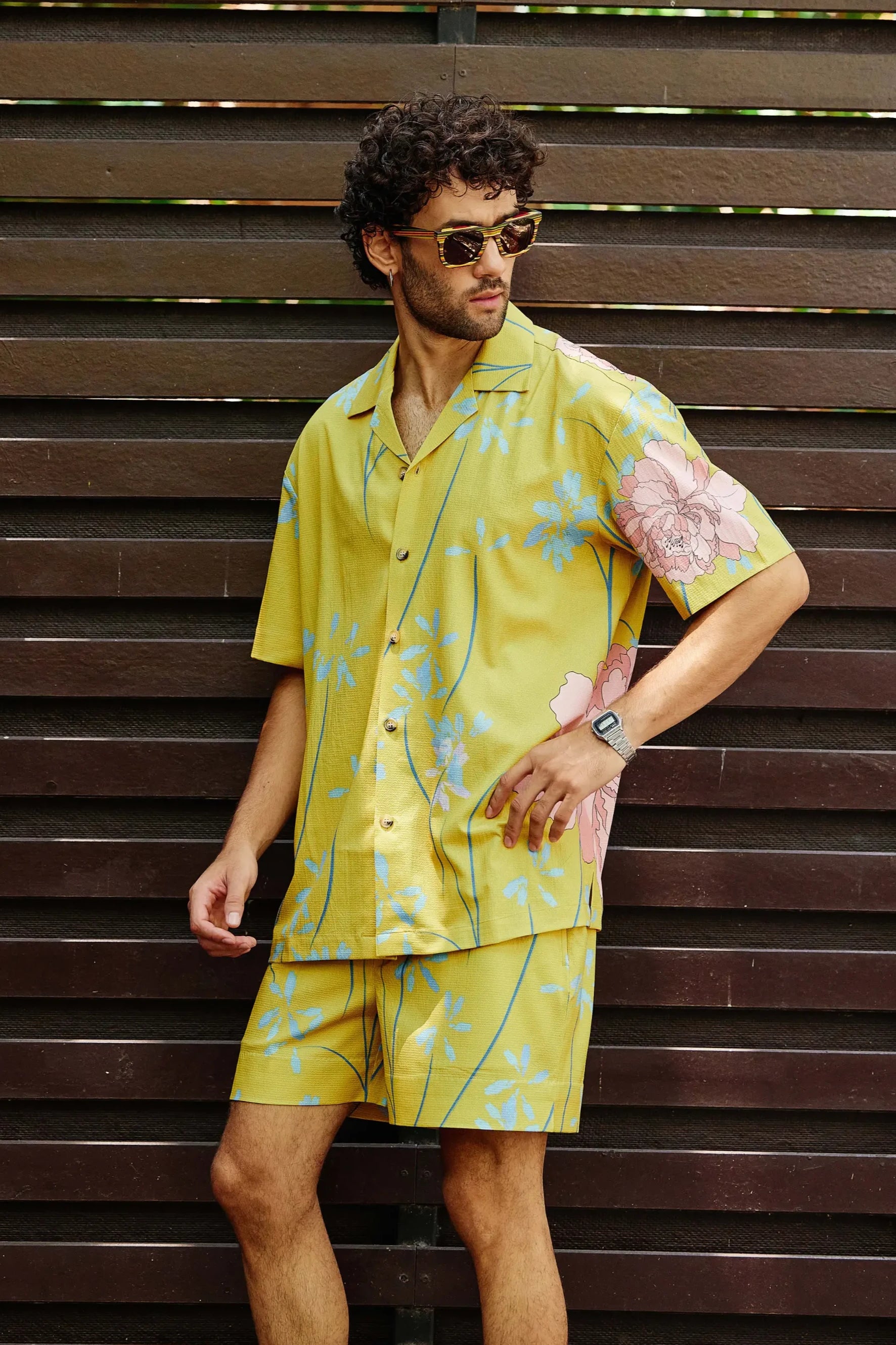 Embrace the sunny days with our Yellow Sundaze Shirt paired with Shorts, a cheerful ensemble that perfectly captures the essence of summer. This vibrant shirt features a lively design that brings a burst of sunshine to your wardrobe, making it ideal for outdoor adventures or casual outings. Crafted from lightweight, breathable fabric, it keeps you comfortable and stylish all day long.