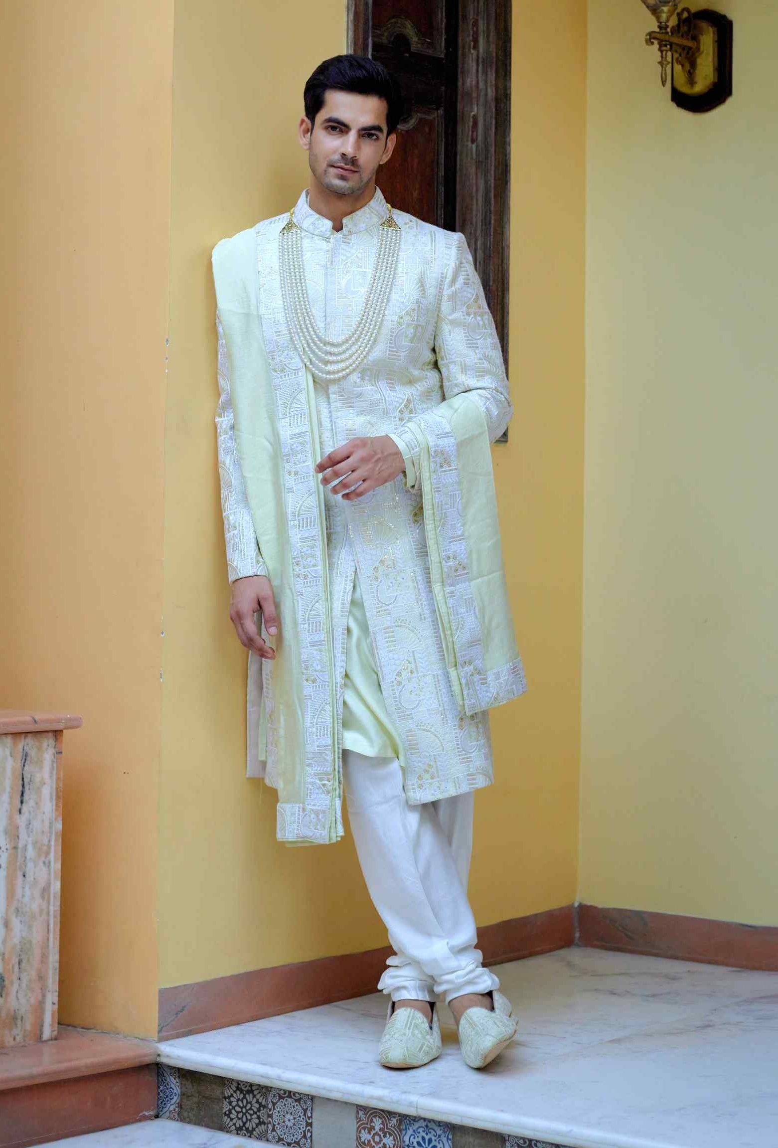 Components: 4 pieces (Kurta, sherwani, stole and churidaar)
