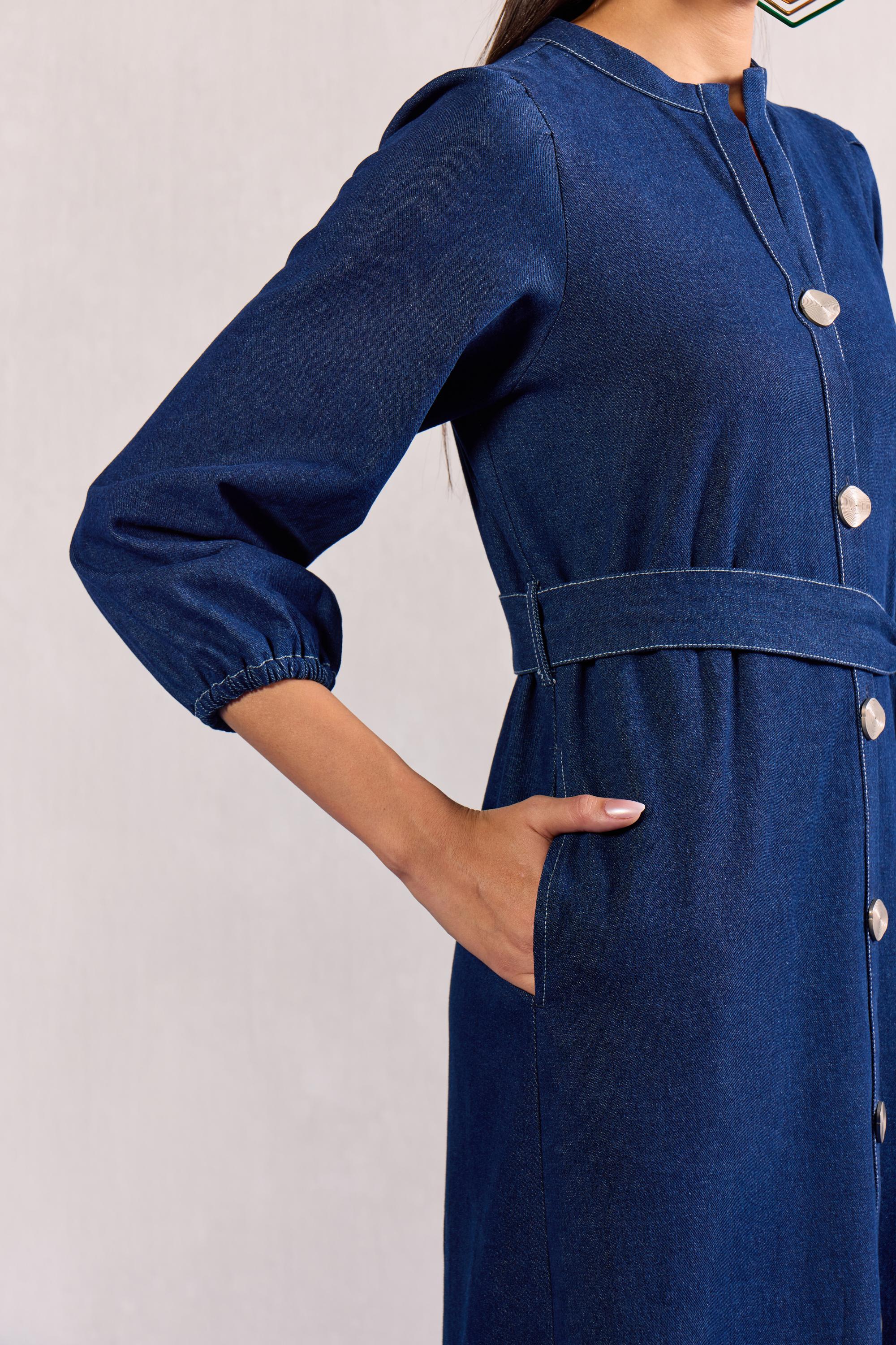 The Denim Maxi Dress is the perfect blend of effortless elegance and everyday comfort, designed for modern wardrobes that value both style and practicality. This Denim Maxi Dress features a flattering silhouette that flows beautifully, offering graceful movement and a relaxed yet polished look. Ideal for casual outings, brunch dates, travel plans, and daytime events, this Denim Maxi Dress ensures versatility for multiple occasions. Crafted for comfort and style, the Denim Maxi Dress offers breathable structure and ease of wear, making it suitable for long hours without compromising on sophistication. The timeless appeal of the Denim Maxi Dress makes it an essential piece that transitions seamlessly from day to evening. Pair this Denim Maxi Dress with flats for a relaxed daytime look or style it with heels and statement accessories for an elevated appearance.