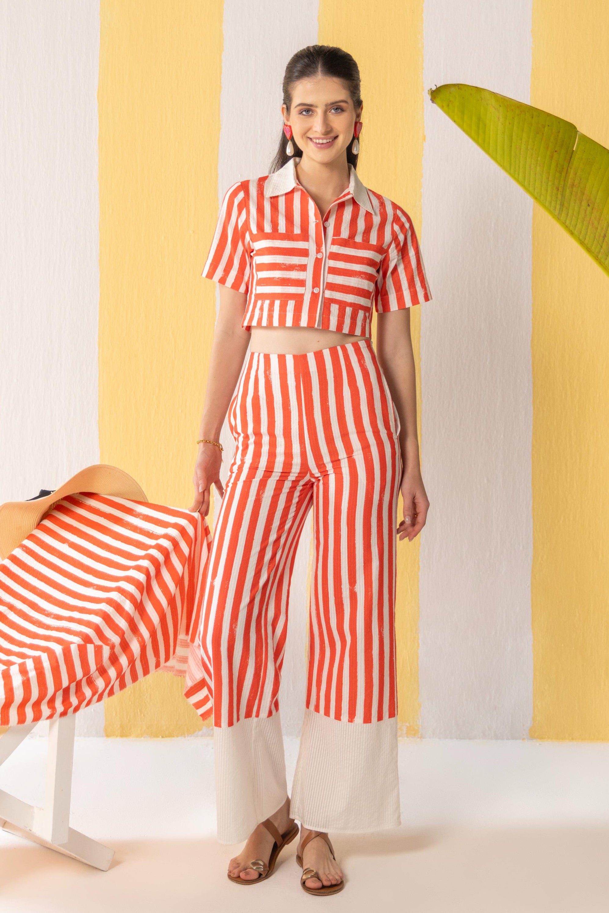 This red striped co-ord set blends modern design with everyday comfort, making it a stylish addition to contemporary wardrobes. Designed with a relaxed and flattering silhouette, this co-ord set offers effortless styling while maintaining a polished and refined appeal. The bold striped pattern enhances the overall look, allowing this co-ord set to stand out while remaining versatile for multiple occasions. Crafted for versatility, this co-ord set transitions seamlessly from daytime outings to relaxed evening plans. The lightweight fabric ensures breathability and comfort, making it suitable for long hours of wear. Whether you're heading for travel, brunch, or casual gatherings, this co-ord set delivers both comfort and effortless style. The thoughtfully designed silhouette makes this co-ord set easy to style across occasions. Pair it with minimal accessories for a relaxed daytime look, or elevate the outfit with statement pieces for a more refined appearance. The adaptable design allows this co-ord set to move smoothly between casual settings and special events.