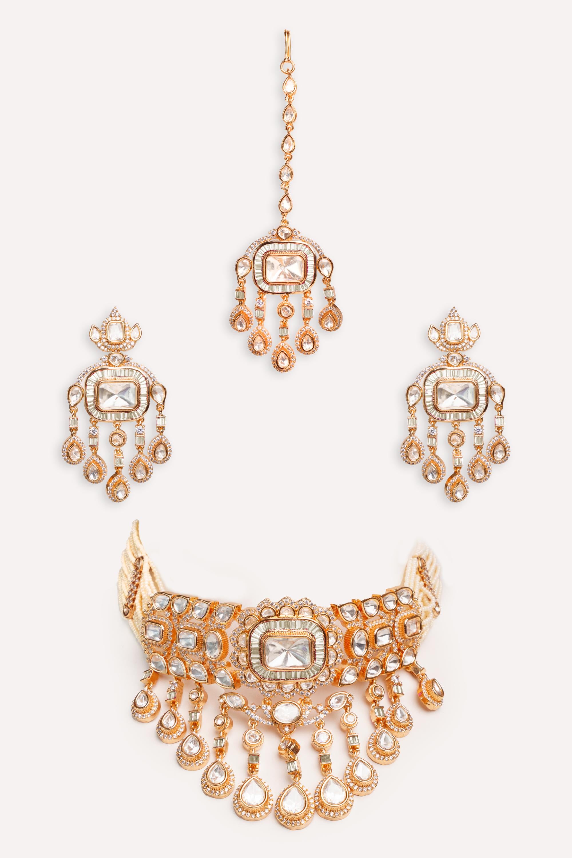 Components: 4 pieces (Choker, pair of earrings, maangtika)